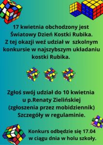 Konkurs odbędzie się 21.04 (Wtorek) o godz. 13.55 w auli naszej szkoły.