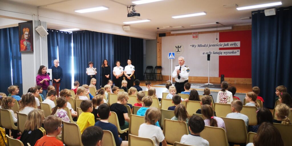 Uczniowie klas pierwszych spotkali się z funkcjonariuszami Straży Miejskiej miasta Poznania w ramach programu wychowawczo-profilaktycznego. Omawiano zasady bezpiecznego poruszania się po drodze, zasady obowiązujące podczas przechodzenia przez jezdnię, czy znaczenie sygnalizacji świetlnej. Wskazano również możliwe zagrożenia dla pieszych oraz sposoby ich uniknięcia. Strażnicy podczas spotkań rozdali uczniom opaski odblaskowe.