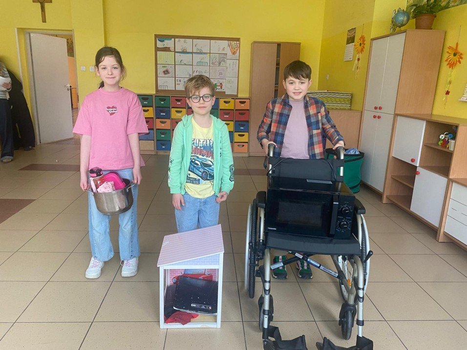 - Ryszard Brakowski z kl.2a z mikrofalą na wózku inwalidzkim