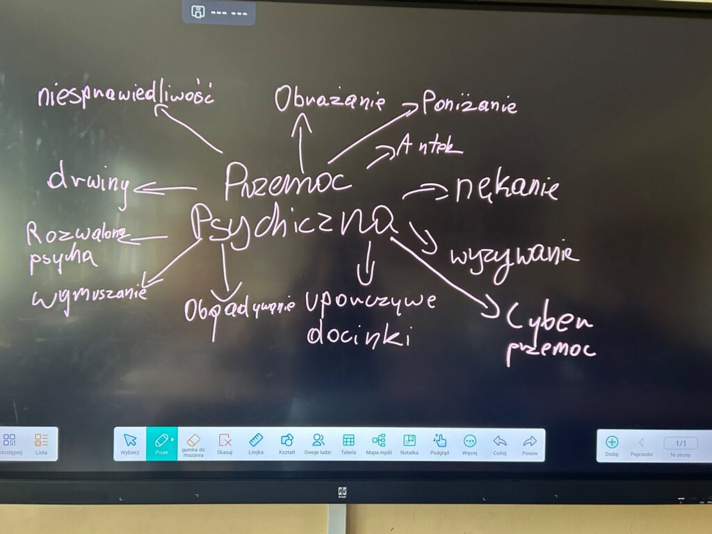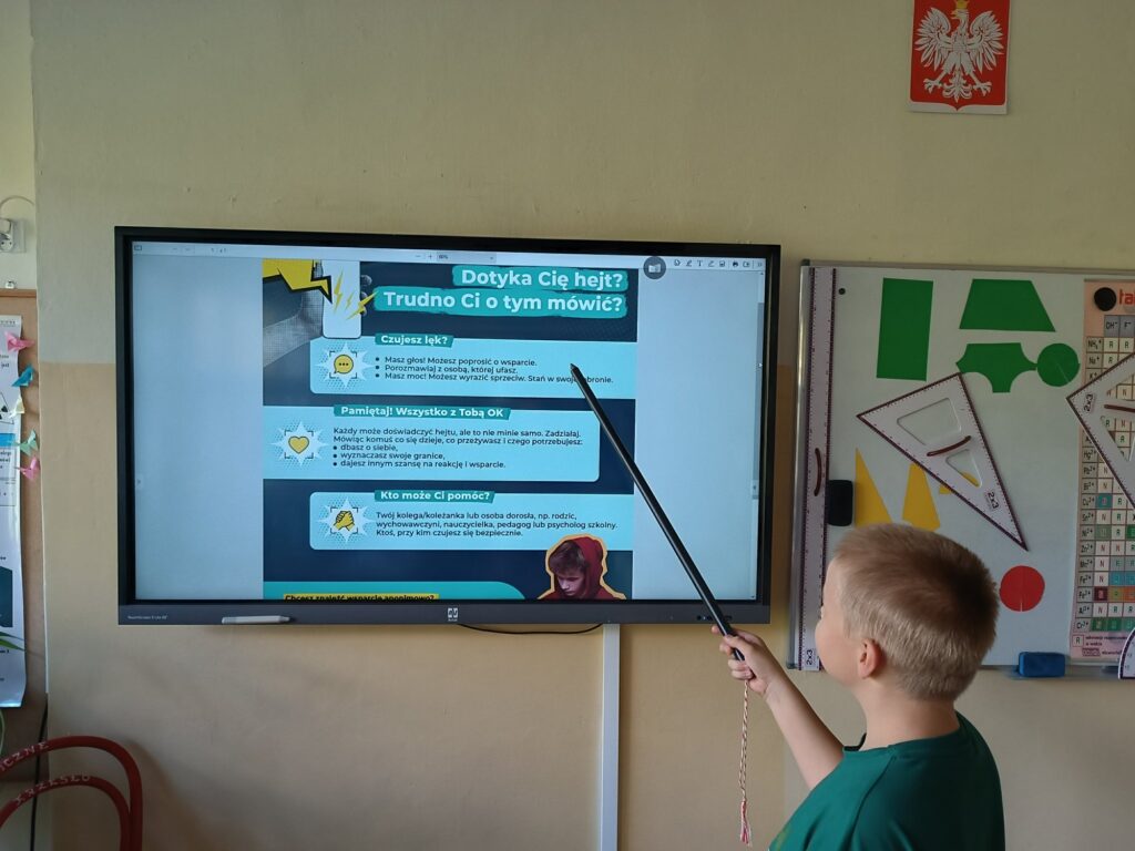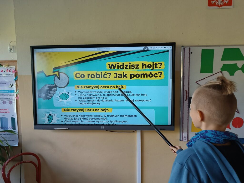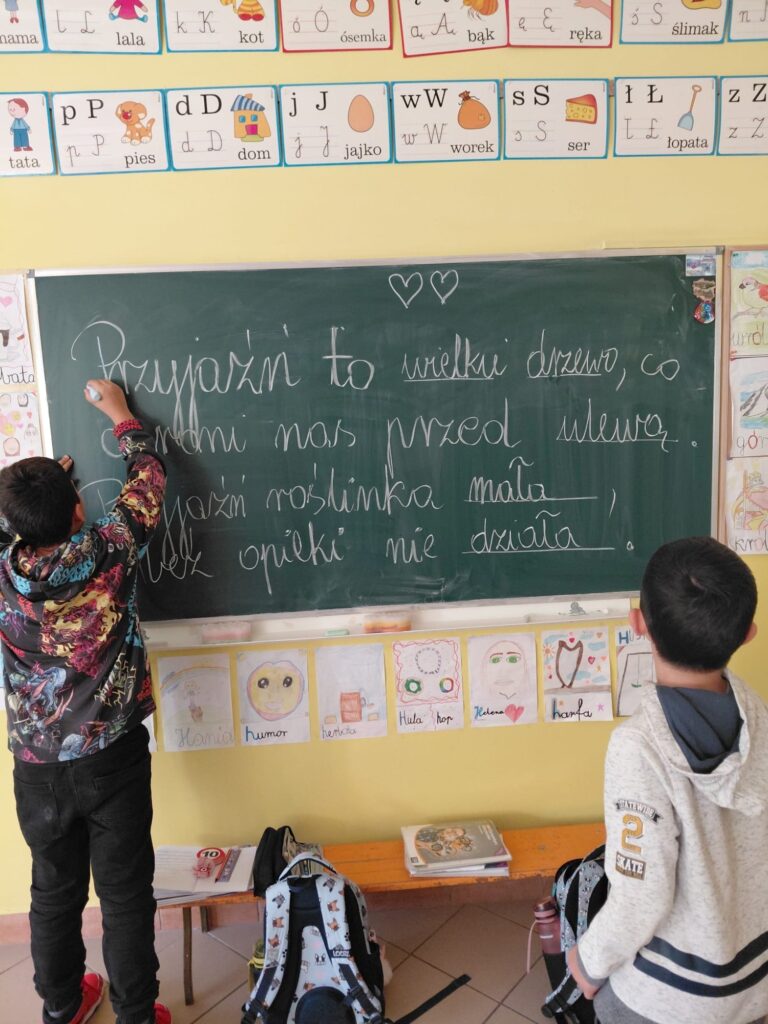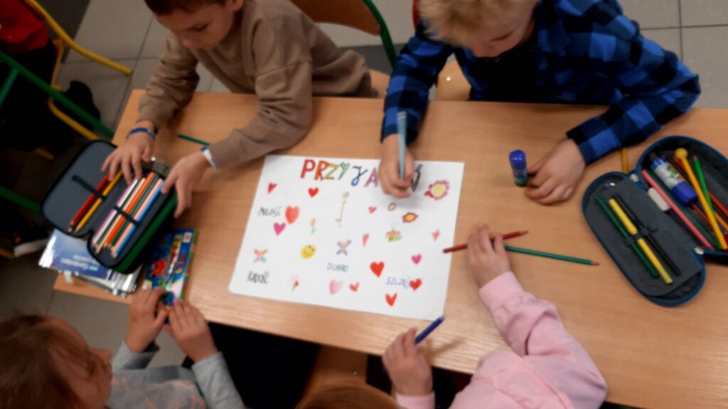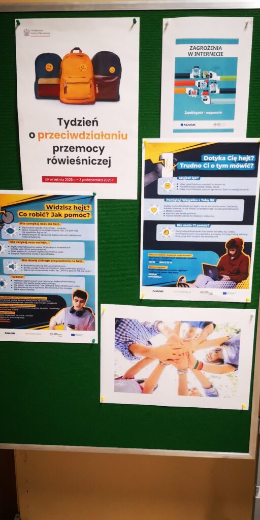 Nasi uczniowie zapoznali się ze ścieżką pomocy dla uczniów – jak działać w sytuacji przemocy rówieśniczej w szkole, jak zapobiegać i jak reagować na cyberprzemoc, jak reagować na hejt. Uczniowie tworzyli „plakaty przyjaźni”, „charakterystyki najlepszego przyjaciela”, „klucze przyjaźni”, „miłe słowa”.