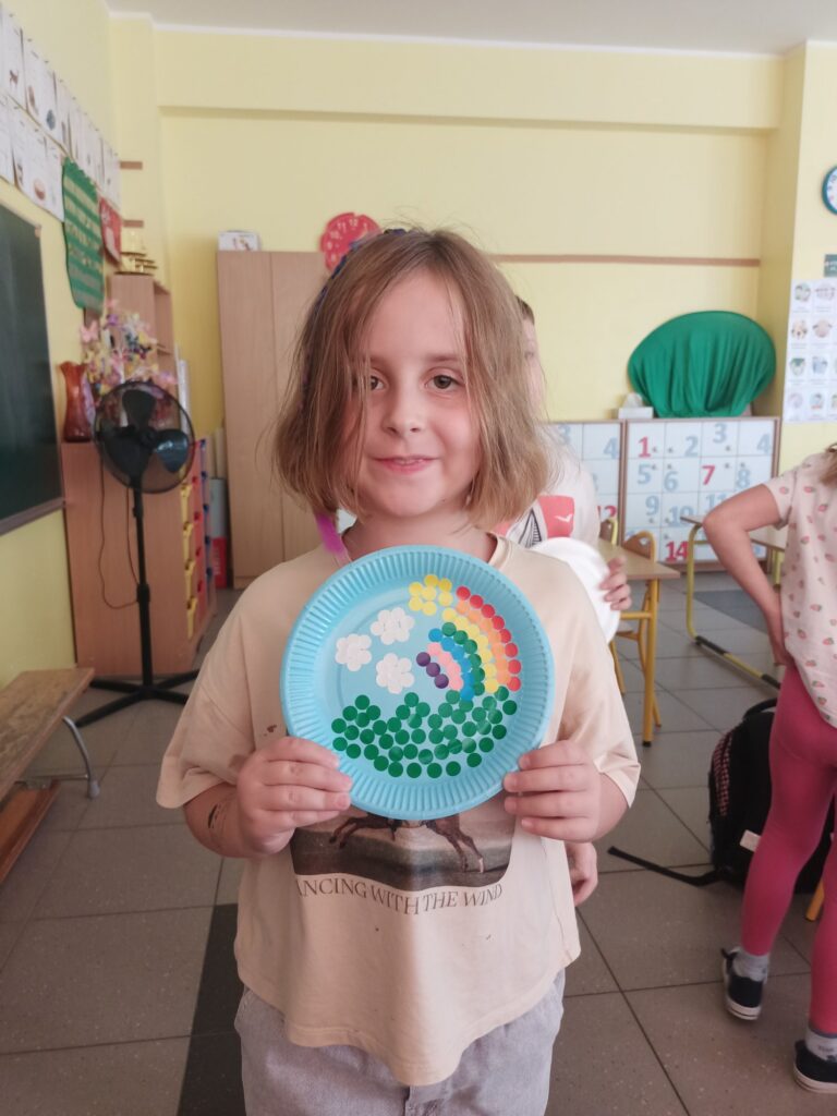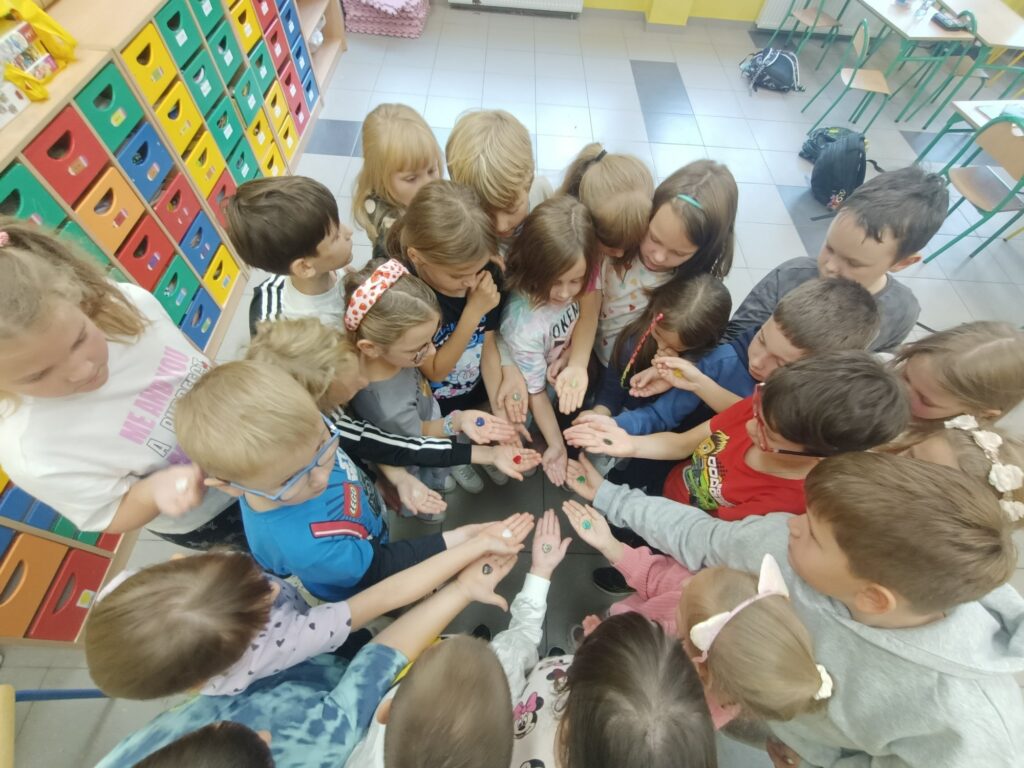 We wrześniu uczniowie klasy 1A obchodzili Dzień Kropki. Wielu uczniów tego dnia ubrało się w „kropkowane” ubrania. Dzieci opowiadały o swoich pasjach i zainteresowaniach. Kreatywność to bardzo mocna strona dzieci. Wykazały się ogromną pomysłowością w tworzeniu kropkowych dzieł. Nie zabrakło również kropkowych zabaw. Dzień ten ukazał dzieciom, jak niewiele trzeba, aby uwierzyć w siebie i swoje twórcze możliwości.