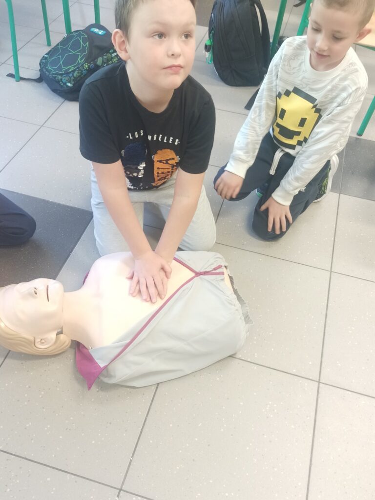 W naszej klasie odbyła się lekcja o pierwszej pomocy, podczas której uczniowie poznali kluczowe zasady postępowania w nagłych wypadkach: ocenę bezpieczeństwa, wezwanie pomocy (numer 112) oraz podstawowe czynności ratujące życie, takie jak udrożnienie dróg oddechowych i ocena oddechu. Zajęcia te miały na celu wyposażenie uczniów w wiedzę i umiejętności, które mogą pomóc w ratowaniu życia i zdrowia do czasu przybycia profesjonalnych służb ratunkowych.