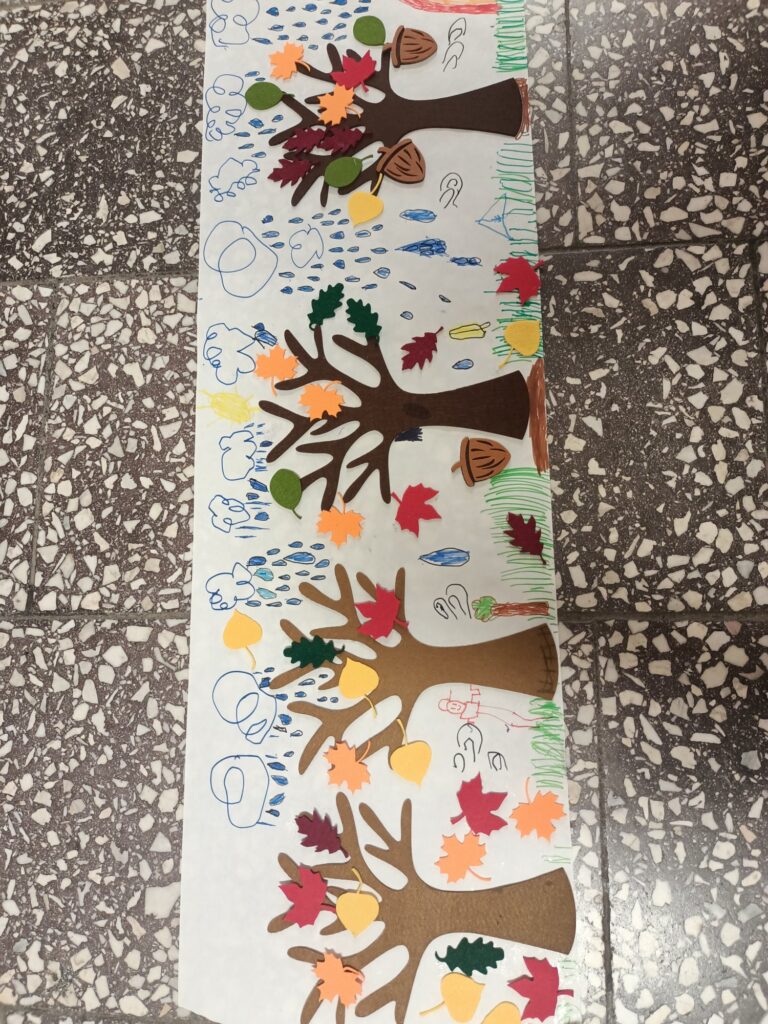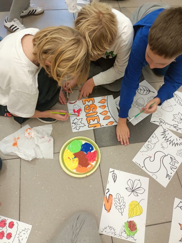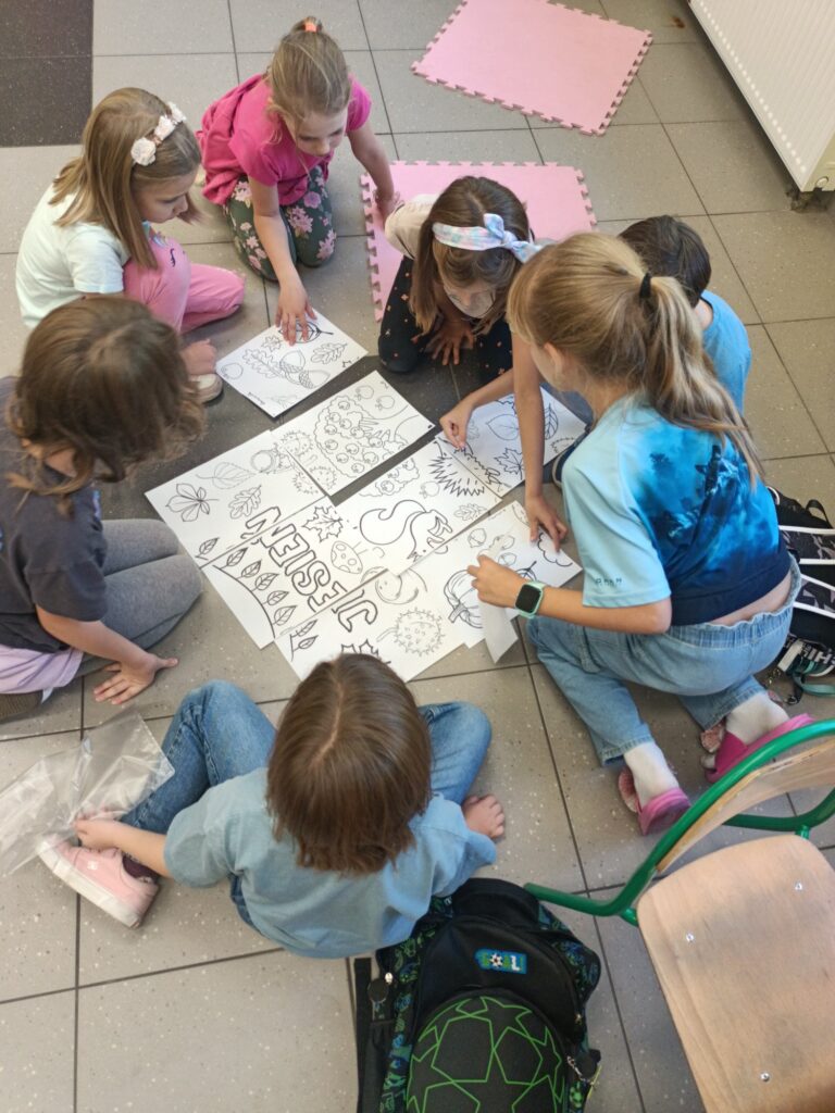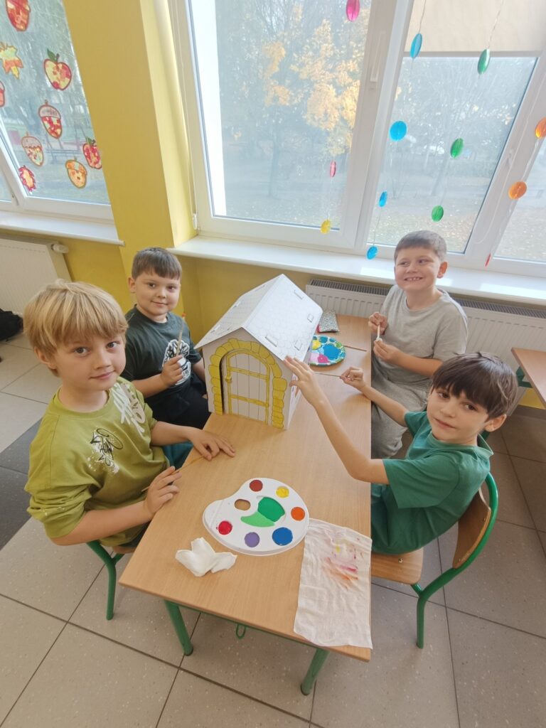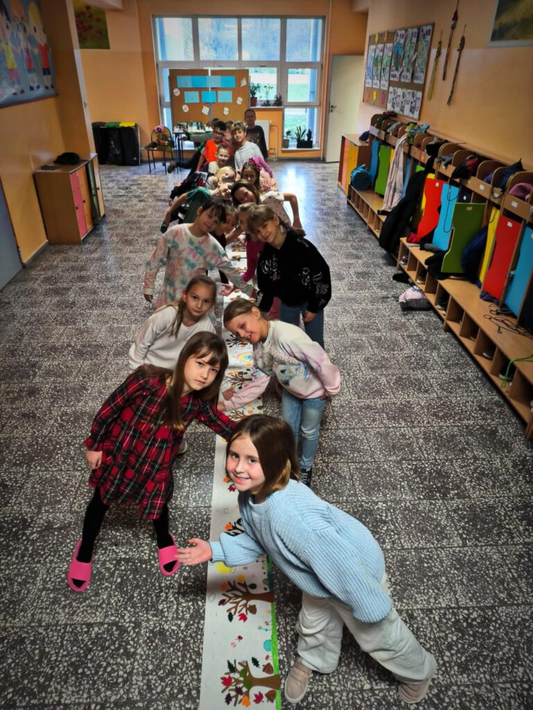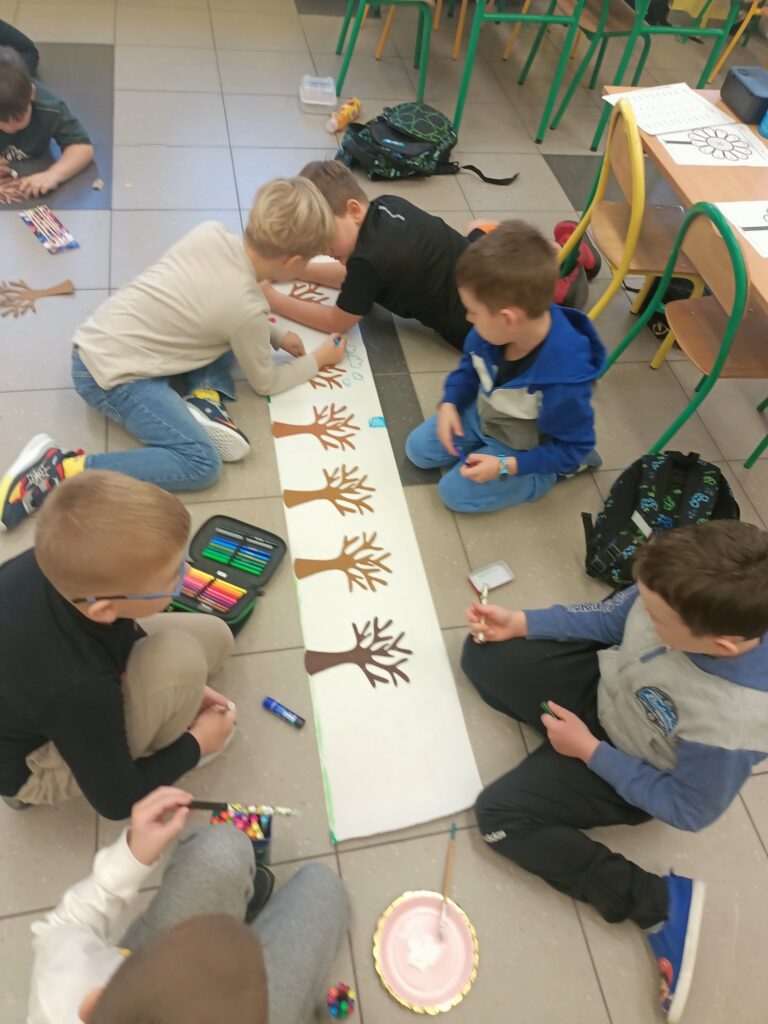 Niektórym jesień może wydawać się smutna i ponura. My lubimy tę porę roku. Uwielbiamy spadające liście i wszystko to, co dzieje się wokół – przebiegające alejami wiewiórki, spacery po parku, jesienne kolory, które pobudzają nas do kreatywności i twórczej pracy. Tacy właśnie jesteśmy, zatracamy się w pięknie świata i całej przyrodzie, lubimy tworzyć, malować, a przede wszystkim jednoczyć się w naszych wspólnych klasowych działaniach:)