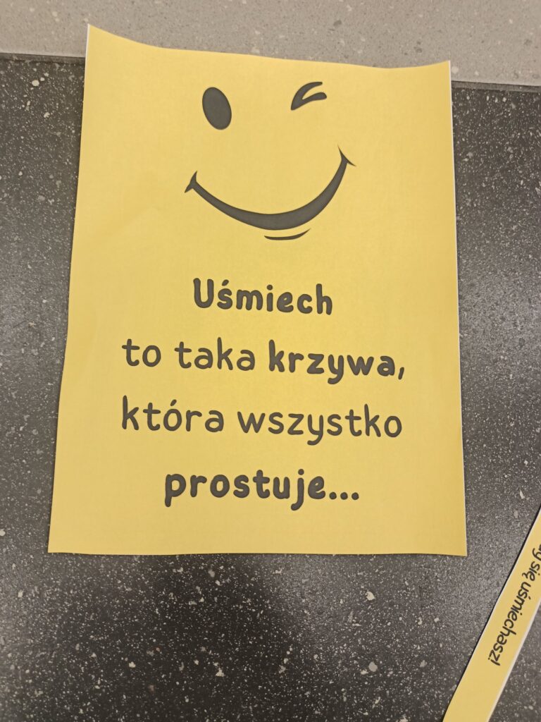 „Dwa jabłka, na zewnątrz takie same, piękne i rumiane. Jednak jedno spadło, uderzyło o podłogę. Nadal piękne na zewnątrz, ale w środku poobijane, różniło się od drugiego, które w środku było nadal soczyste. To tak jak z naszymi uczuciami. Jak ktoś sprawi nam przykrość, zrobi krzywdę, powie coś niemiłego, na zewnątrz często po nas tego nie widać, staramy się ukryć to, co nas zabolało, ale w środku serduszko krzyczy, jest poranione, tak jak poobijane jabłko. Szacunek należy się każdemu, okazywanie dobra również, otwórzmy serca, a miłe słowo niech idzie w świat…”
