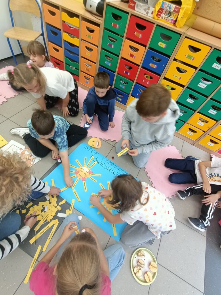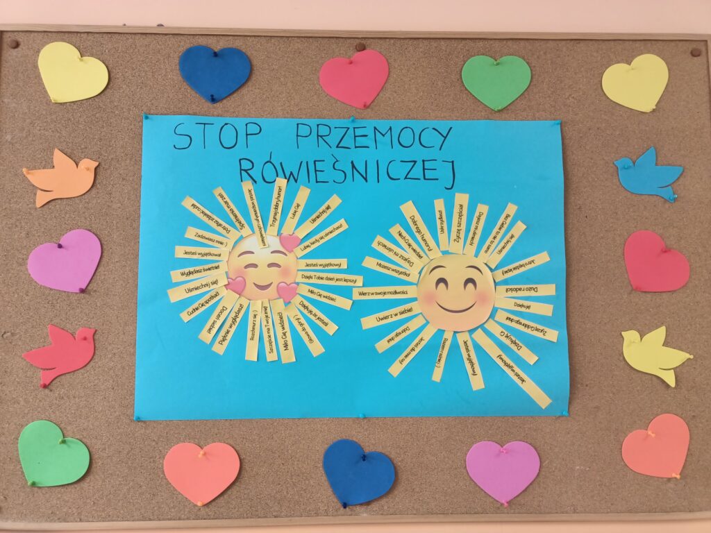 We wrześniu wzięliśmy udział w projekcie Tydzień Przeciwdziałania Przemocy Rówieśniczej. Zgodnie z tematyką, skupiliśmy się na relacjach rówieśniczych i przeciwdziałaniu przemocy. Wzięliśmy także udział w warsztatach z wykorzystaniem jabłek, przygotowaliśmy plakat związany z tematem: