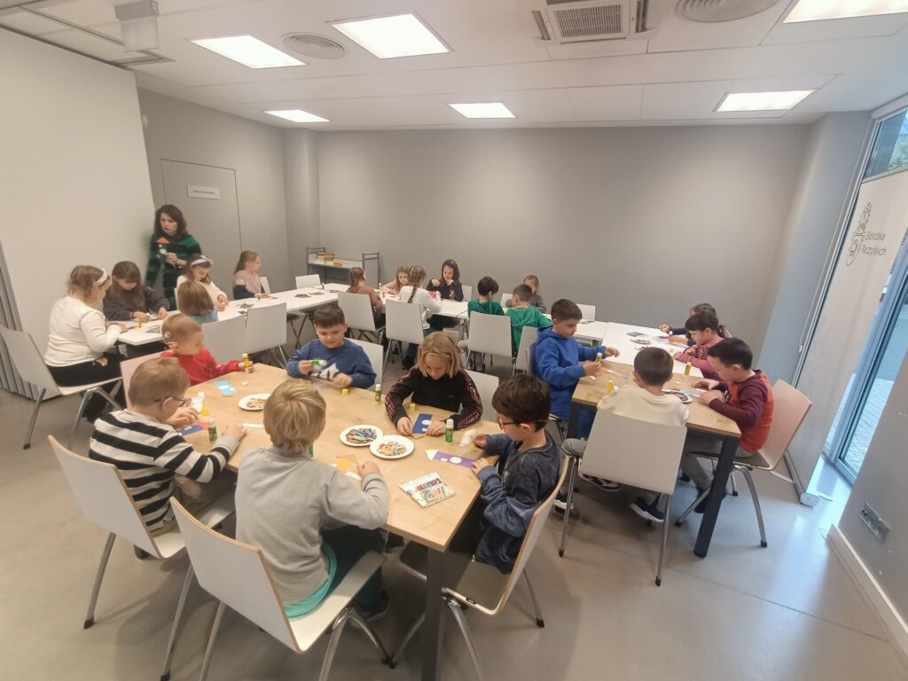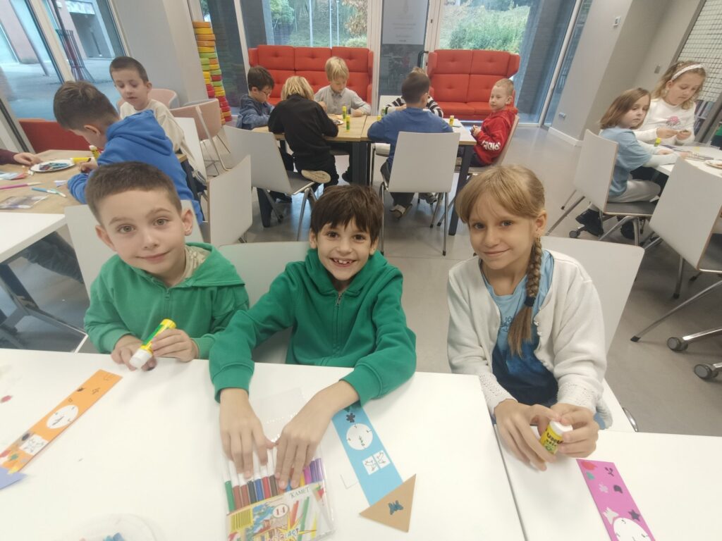 W październiku klasa 1a wzięła udział w warsztatach w Bibliotece Raczyńskich. Dzięki uprzejmości i gościnności pracowników biblioteki posłuchaliśmy legendy o Poznańskich Koziołkach. Nie mogło zabraknąć działalności plastycznej, którą bardzo lubimy, dlatego wykonaliśmy piękne zakładki do książek. Efekty naszej pracy znajdziecie w galerii poniżej.