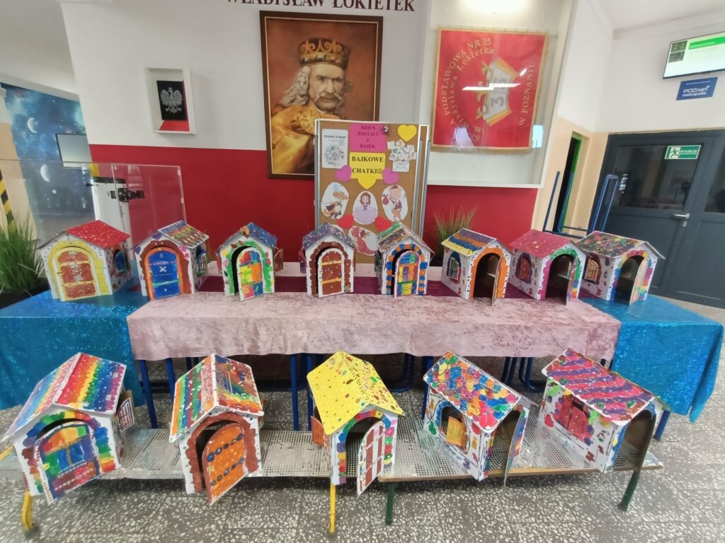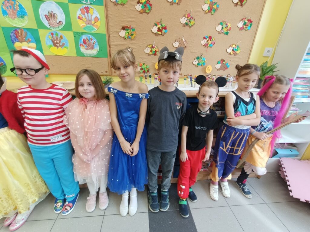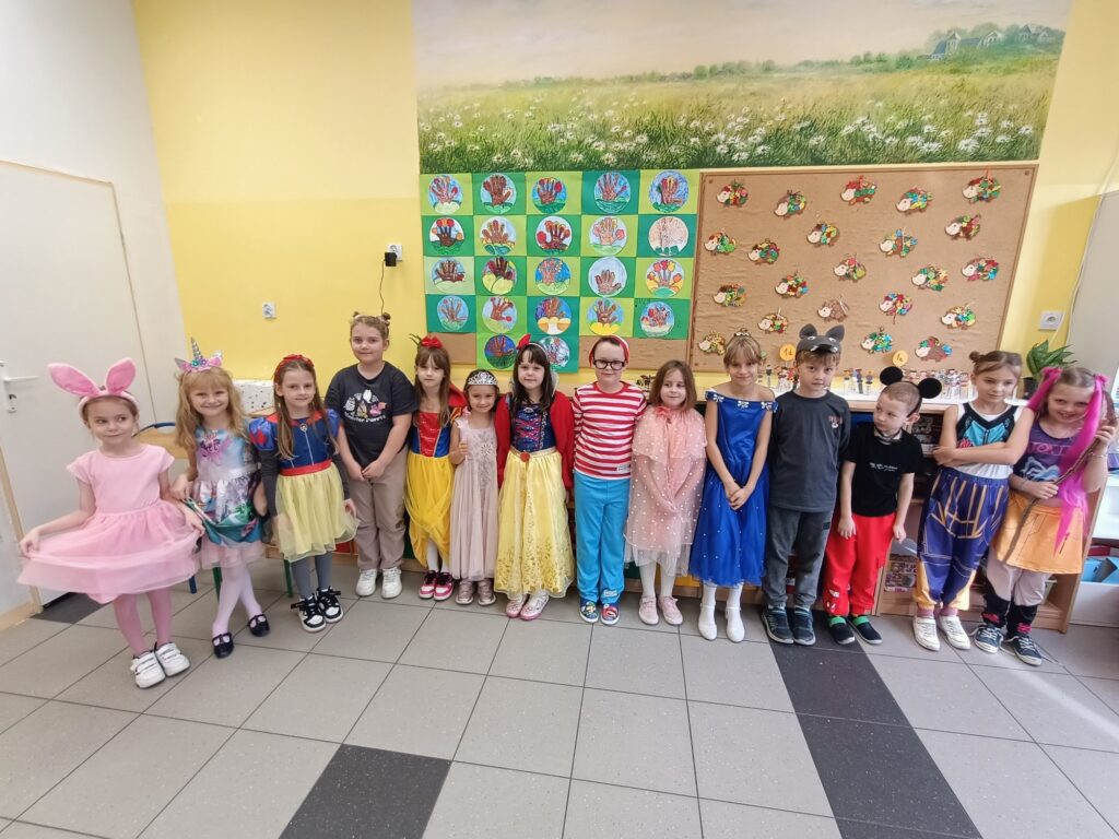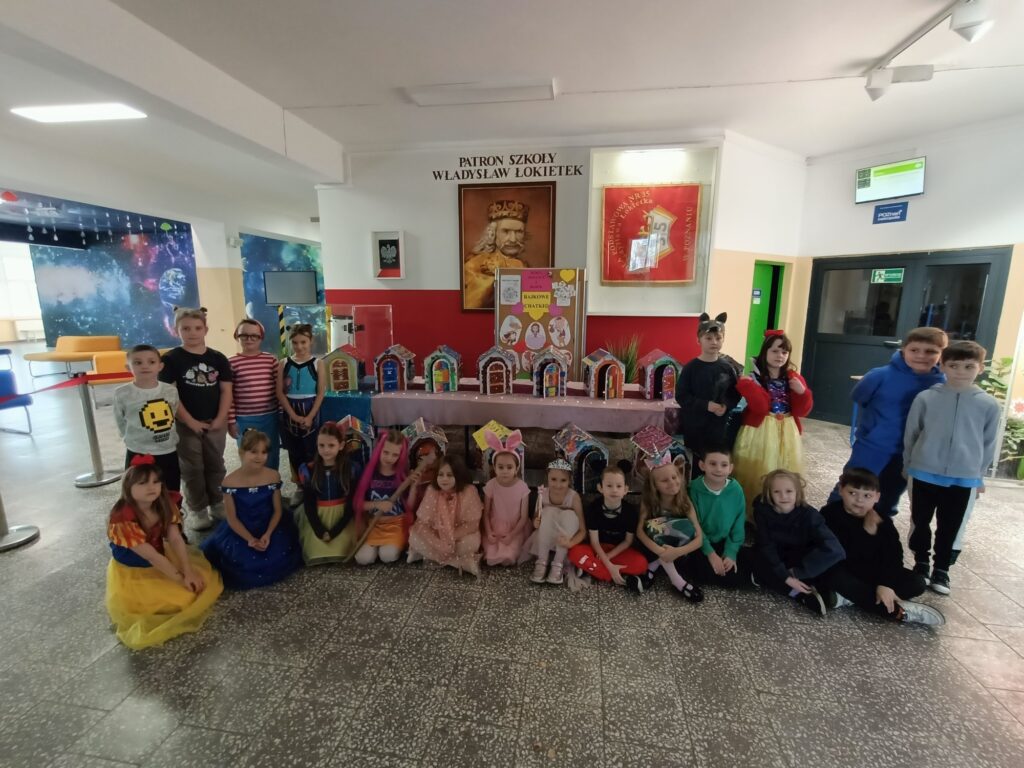W dniu 5 listopada w naszej klasie obchodziliśmy Międzynarodowy Dzień Postaci z Bajek. To dzień urodzin Walta Disney’a. Święto niesie za sobą nie tylko chęć docenienia bajek i ich twórców, ale i wartości edukacyjne. W tym dniu zainteresowani uczniowie przebrali się za dowolną postać z wybranej przez siebie bajki. Była to również dobra okazja, by zachęcić wszystkich do czytania bajek, a co za tym idzie rozwijania wyobraźni, pamięci, zdobywania wiedzy na różne tematy. Dzieci kochają bajki (i baśnie), dlatego wykorzystując ten temat można trafić w ich gusta i wspólnie wykonać coś twórczego i kreatywnego. Prezentowaliśmy nasze ulubione bajki na własnoręcznie wykonanych pracach plastycznych, mogliśmy rozwiązywać zagadki o bohaterach bajkowych, rozpoznawaliśmy postacie i bajki na podstawie wylosowanych rekwizytów oraz braliśmy udział w zabawach wymagających wykazaniem się znajomością treści bajek. To był dobry moment, aby przypomnieć sobie część z nich. Przygotowaliśmy również piękną wystawę w holu szkoły, bajeczne domki wprowadziły nas w bajeczny klimat. Bajki towarzyszą nam od najmłodszych lat, rozweselają i bawią, ale też przekazują ważne prawdy życiowe. Dzień ten przypomniał nam wszystkim, jak ważne są bajki w życiu każdego dziecka, był także okazją do świetnej zabawy, kreatywnych działań i rozwijania zainteresowań czytelniczych, sprawił nam wiele radości:)