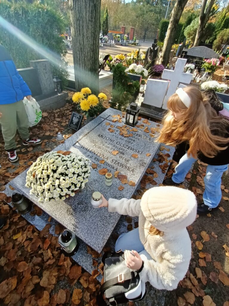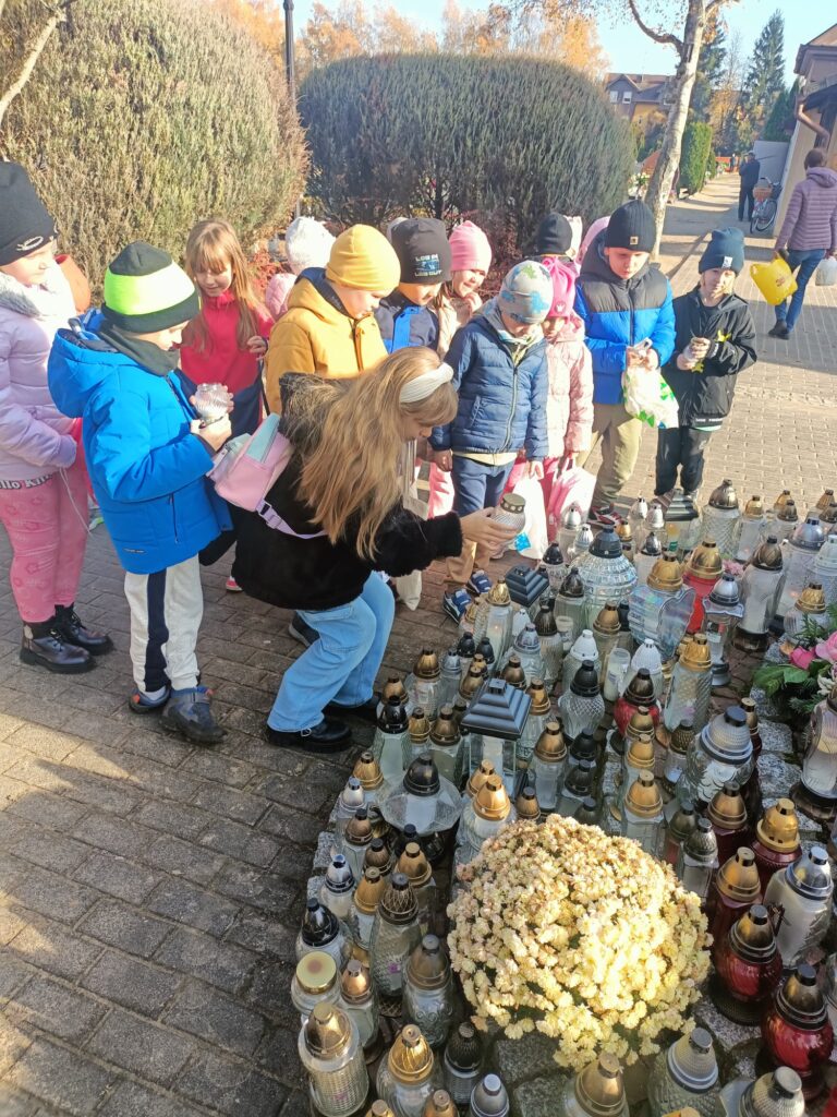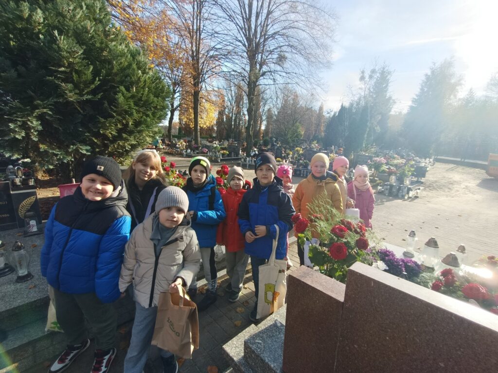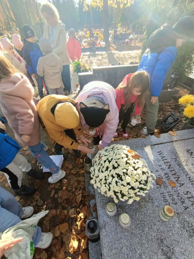 Uczniowie w pełnej zadumie wybrali się na pobliski cmentarz, aby oddać hołd Poległym, którzy walczyli o naszą Wolność. Zadbały również o groby opuszczone, zapaliły znicze w miejscu poświęconym pamięci dzieci nienarodzonych.  To był dzień pełen wzruszeń i refleksji.