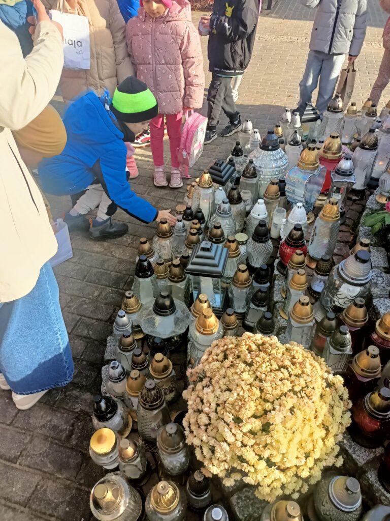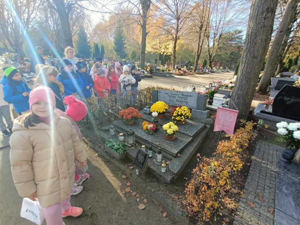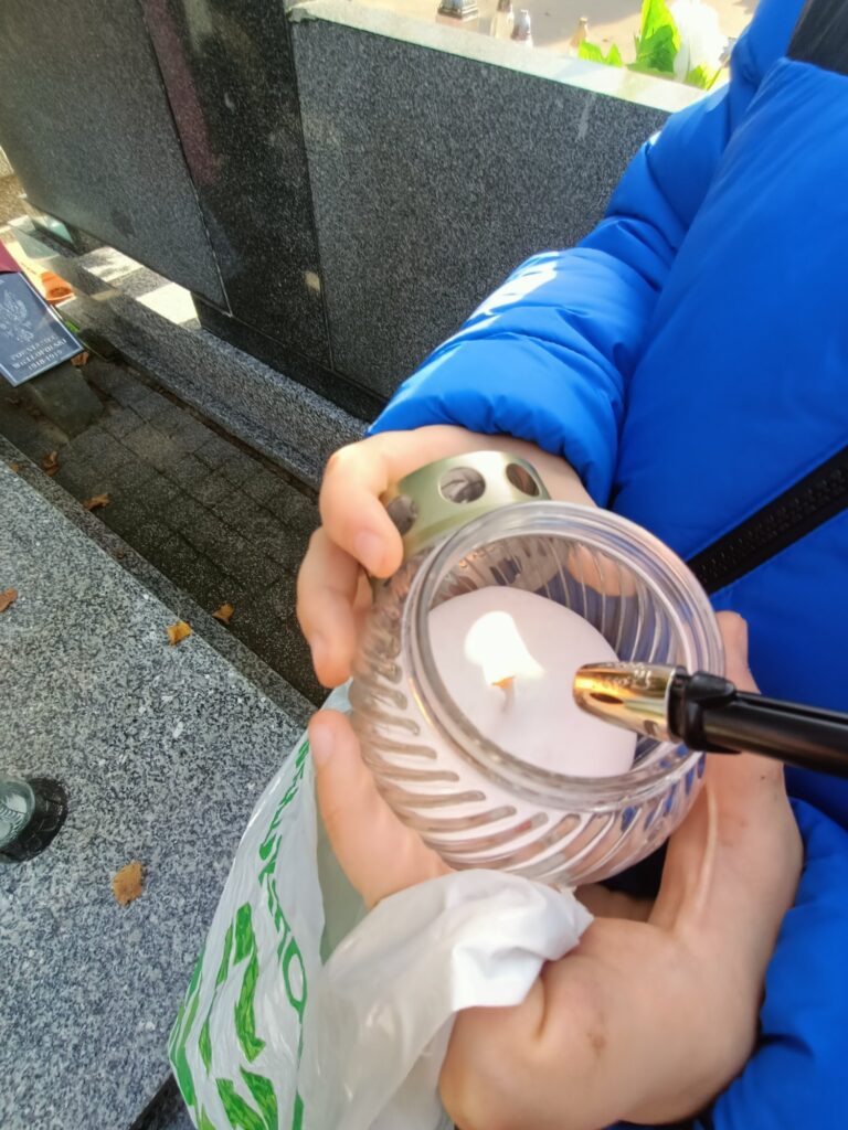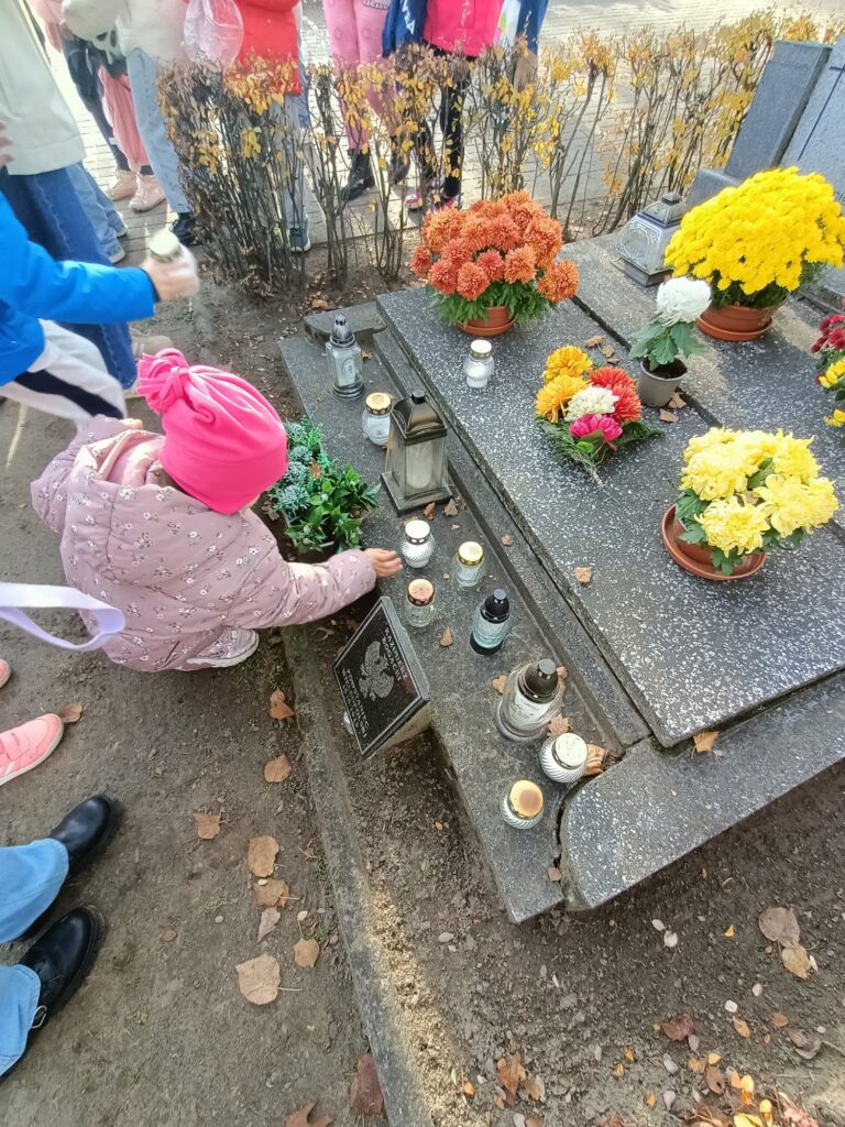 Uczniowie w pełnej zadumie wybrali się na pobliski cmentarz, aby oddać hołd Poległym, którzy walczyli o naszą Wolność. Zadbały również o groby opuszczone, zapaliły znicze w miejscu poświęconym pamięci dzieci nienarodzonych.  To był dzień pełen wzruszeń i refleksji.