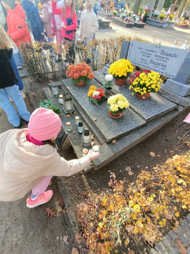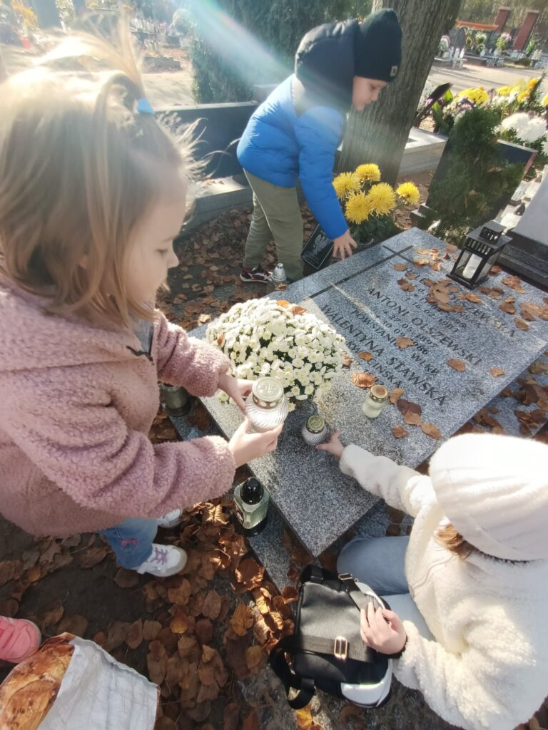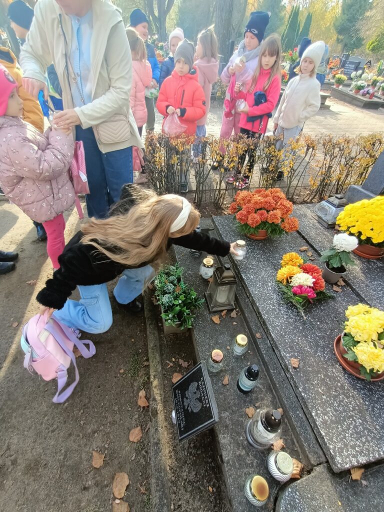 Dzieci z klasy 1A pamiętają o tych, którzy odeszli. Niewątpliwie takie wspominki, rozmowy o osobach bliskich, także tych z kraju i ze świata, które wniosły w nasze życie coś dobrego, były dla uczniów głębokim przeżyciem, wprowadziły w nastrój refleksji, zadumy oraz wspomnień. To jedna z ważniejszych lekcji, lekcji życia, która jest wyrazem pamięci i szacunku do osób, których już z nami nie ma.