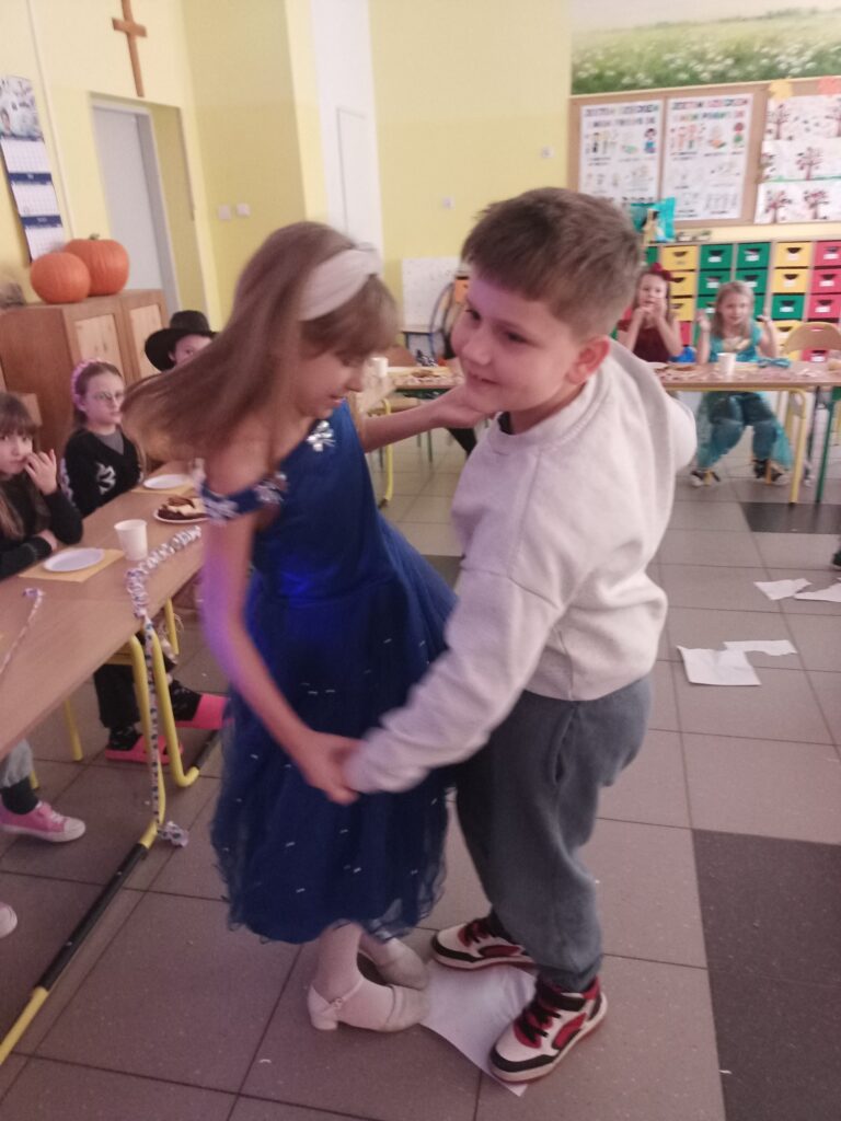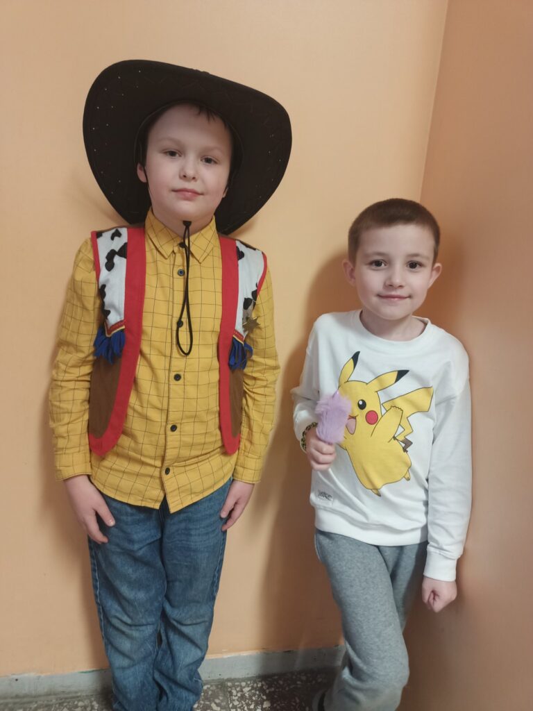 W dniu 5 listopada w naszej klasie obchodziliśmy Międzynarodowy Dzień Postaci z Bajek. To dzień urodzin Walta Disney’a. Święto niesie za sobą nie tylko chęć docenienia bajek i ich twórców, ale i wartości edukacyjne. W tym dniu zainteresowani uczniowie przebrali się za dowolną postać z wybranej przez siebie bajki. Była to również dobra okazja, by zachęcić wszystkich do czytania bajek, a co za tym idzie rozwijania wyobraźni, pamięci, zdobywania wiedzy na różne tematy. Dzieci kochają bajki (i baśnie), dlatego wykorzystując ten temat można trafić w ich gusta i wspólnie wykonać coś twórczego i kreatywnego. Prezentowaliśmy nasze ulubione bajki na własnoręcznie wykonanych pracach plastycznych, mogliśmy rozwiązywać zagadki o bohaterach bajkowych, rozpoznawaliśmy postacie i bajki na podstawie wylosowanych rekwizytów oraz braliśmy udział w zabawach wymagających wykazaniem się znajomością treści bajek. To był dobry moment, aby przypomnieć sobie część z nich. Przygotowaliśmy również piękną wystawę w holu szkoły, bajeczne domki wprowadziły nas w bajeczny klimat. Bajki towarzyszą nam od najmłodszych lat, rozweselają i bawią, ale też przekazują ważne prawdy życiowe. Dzień ten przypomniał nam wszystkim, jak ważne są bajki w życiu każdego dziecka, był także okazją do świetnej zabawy, kreatywnych działań i rozwijania zainteresowań czytelniczych, sprawił nam wiele radości:)