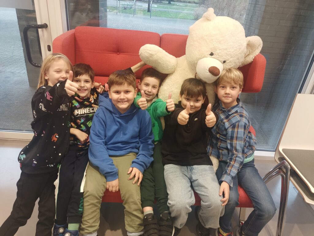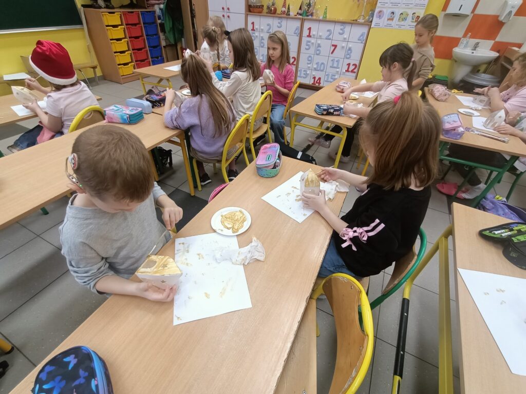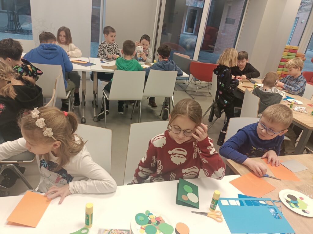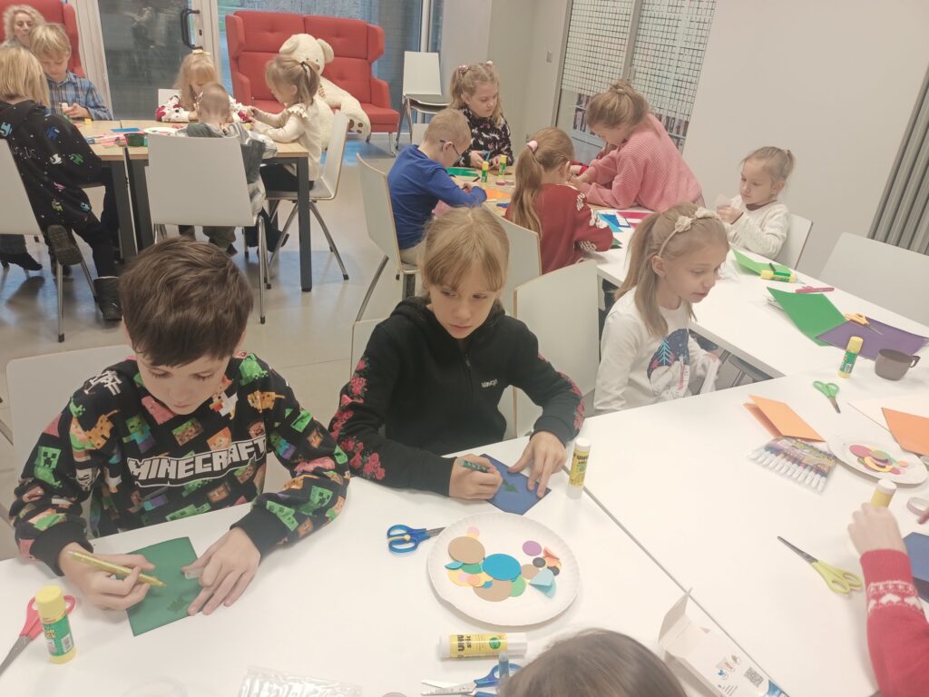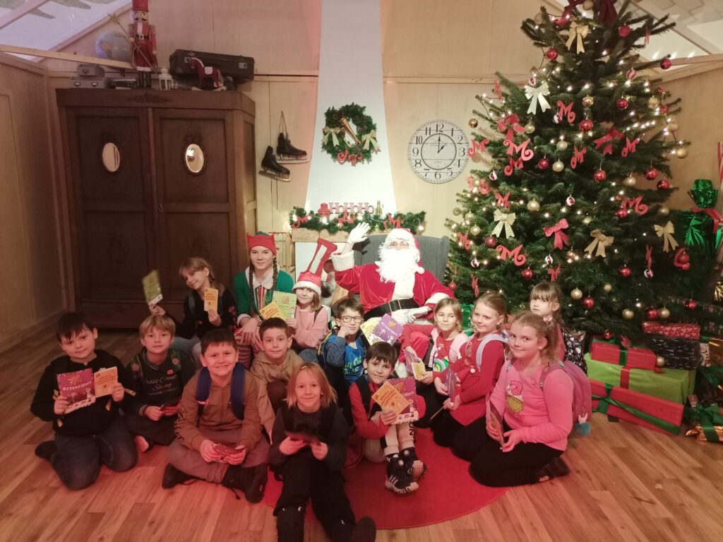 W grudniu klasa 1a wzięła udział w warsztatach w Bibliotece Raczyńskich. Dzięki uprzejmości i gościnności pracowników biblioteki posłuchaliśmy opowieści „O Świętym Mikołaju”. Nie mogło zabraknąć działalności plastycznej, którą bardzo lubimy, dlatego wykonaliśmy piękne kartki świąteczne. Efekty naszej pracy znajdziecie w galerii poniżej.