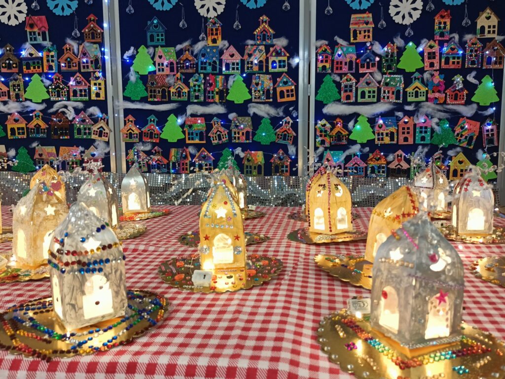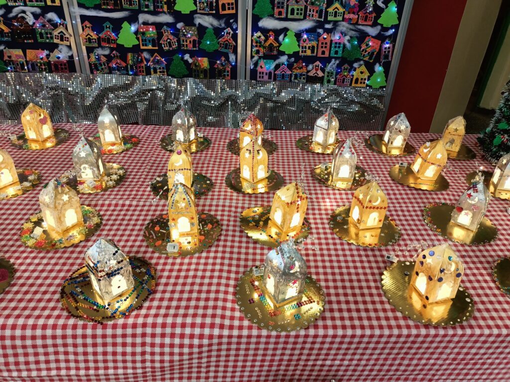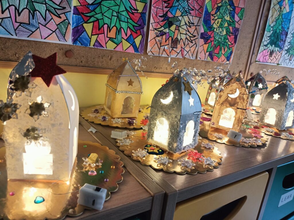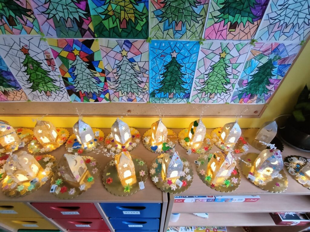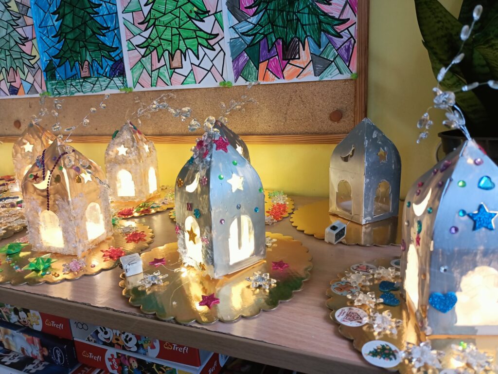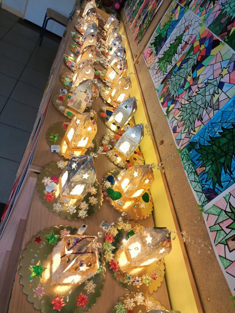 Wystawę w holu szkoły mogła podziwiać cała społeczność szkolna. Rozświetlone ozdobne lampiony wprowadziły wszystkich w iście świąteczny nastrój:)