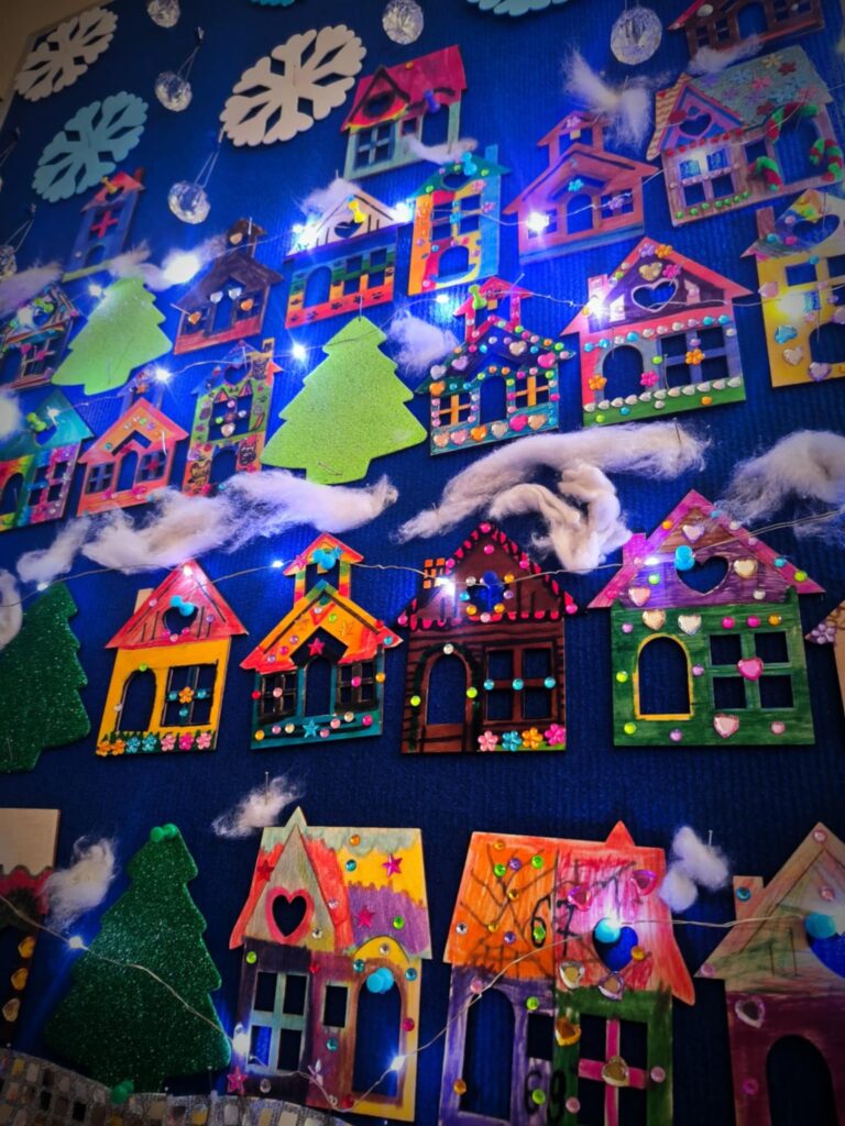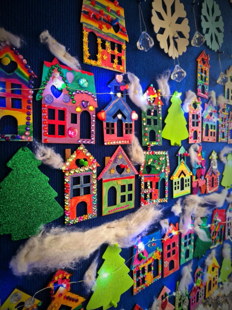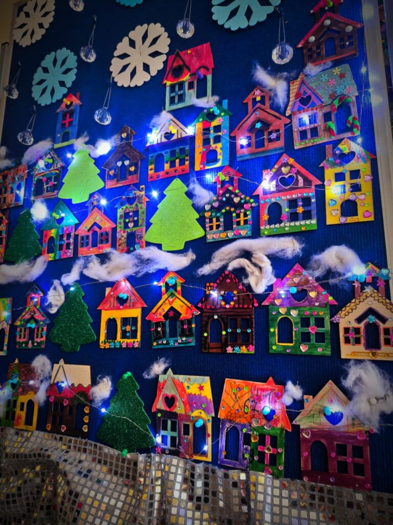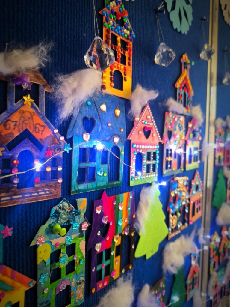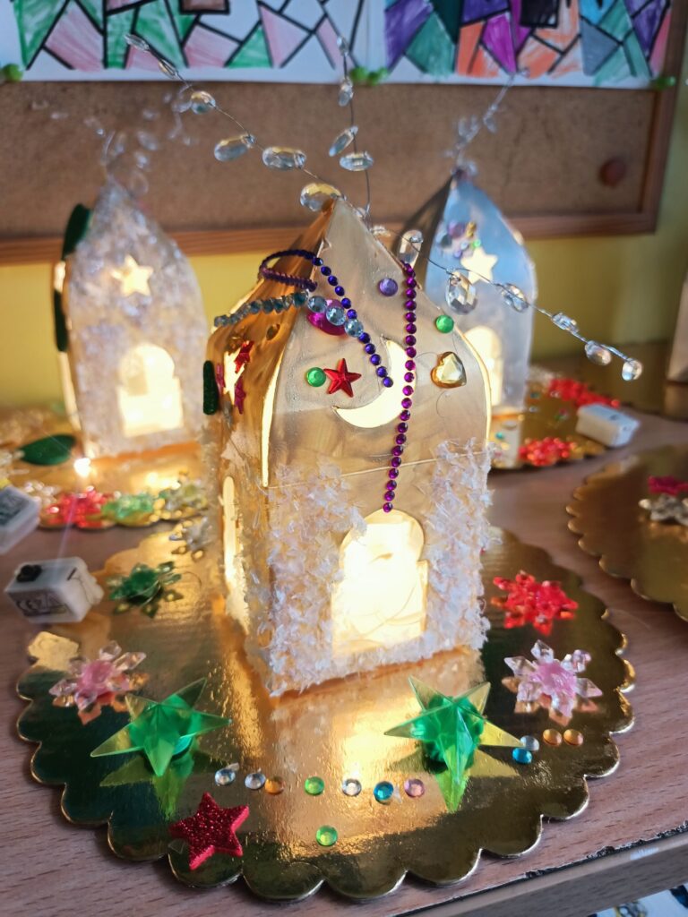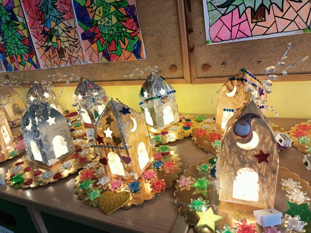 Wystawę w holu szkoły mogła podziwiać cała społeczność szkolna. Rozświetlone ozdobne lampiony wprowadziły wszystkich w iście świąteczny nastrój:)
