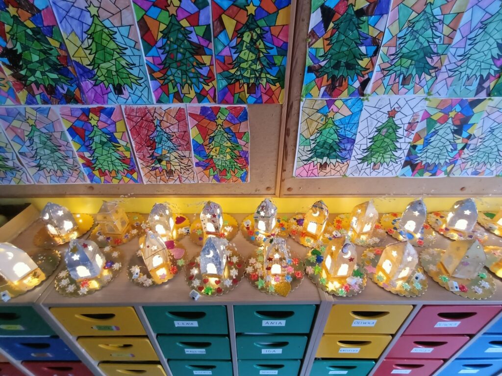 W ramach integracji klasa 1A i 1D przygotowały wspaniałą rozświetloną wystawę, która była zwieńczeniem wspólnych świątecznych przygotowań. To piękne lampiony, które uczniowie wykonali całkowicie własnoręcznie. Dzieci włożyły w swoją pracę mnóstwo wysiłku, ale również serca. Każda z tych dekoracji jest urocza i wyjątkowa, każda znajdzie swoje miejsce na świątecznym stole w naszych domach. Składamy ogromne podziękowania naszym Kochanym Rodzicom nie tylko za zakup potrzebnych materiałów, których było naprawdę sporo, również za to, że mogliśmy się poczuć jak prawdziwi MALI ARTYŚCI!!! Bez Waszej pomocy nie byłoby tak efektownie:)