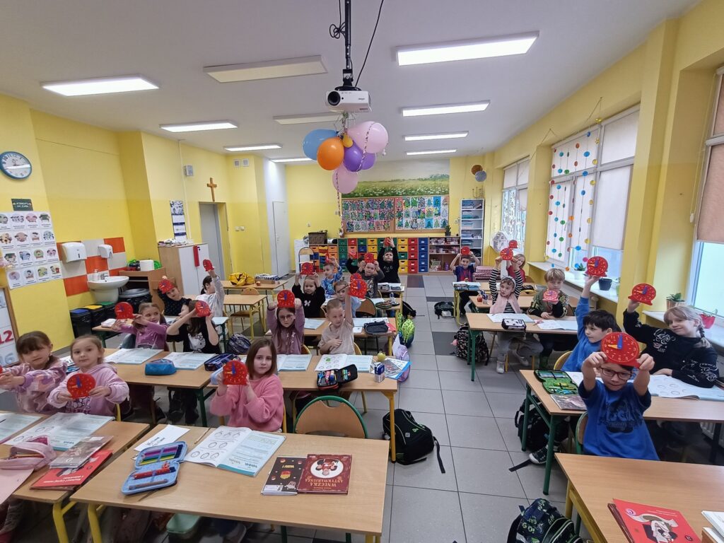 We wrześniu uczniowie klasy 1A obchodzili Dzień Kropki. Wielu uczniów tego dnia ubrało się w „kropkowane” ubrania. Dzieci opowiadały o swoich pasjach i zainteresowaniach. Kreatywność to bardzo mocna strona dzieci. Wykazały się ogromną pomysłowością w tworzeniu kropkowych dzieł. Nie zabrakło również kropkowych zabaw. Dzień ten ukazał dzieciom, jak niewiele trzeba, aby uwierzyć w siebie i swoje twórcze możliwości.
