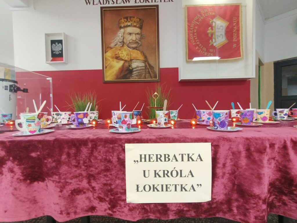 Obchody Dnia Patrona to jedno z najważniejszych wydarzeń w naszej szkole. W ramach integracji klasa 1A i 1D przygotowały piękną wystawę „HERBATKA U KRÓLA ŁOKIETKA”, która zdobiła hol główny naszej szkoły. Każdy ozdobił swoją filiżankę według własnego pomysłu. W tak licznej grupie pomysłów było co nie miara! Każdy kubeczek miał swój niepowtarzalny wygląd, każdy był inny, każdy pomysłowy i oryginalny! Jakże miło było wypić ową herbatkę z naszym wspaniałym patronem szkoły!!!