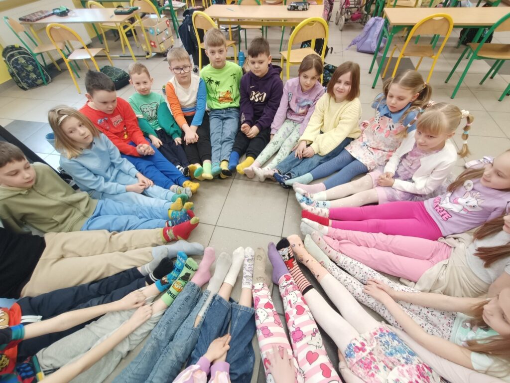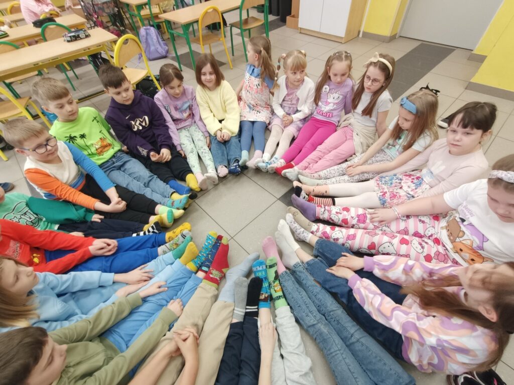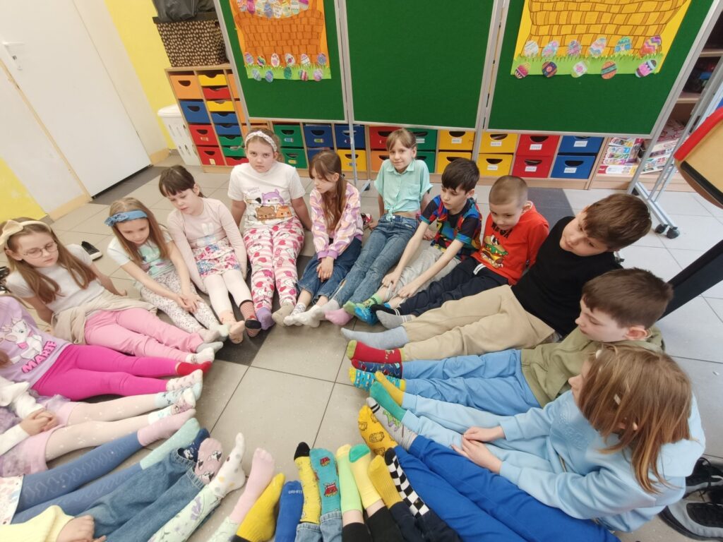 W związku z tym, że 21 marca przypada  Światowy Dzień Zespołu Downa- Dzień Kolorowej Skarpetki,  uczniowie z klasy 1A przyszli w tym dniu do szkoły w skarpetkach nie do pary, aby solidaryzować się z osobami, które zmagają się z tą chorobą. Uwrażliwianie na potrzeby drugiego człowieka i okazywanie szacunku to podstawa!