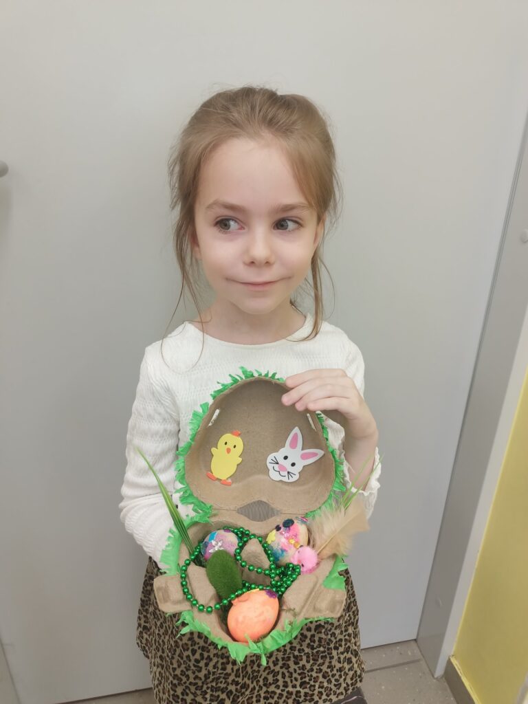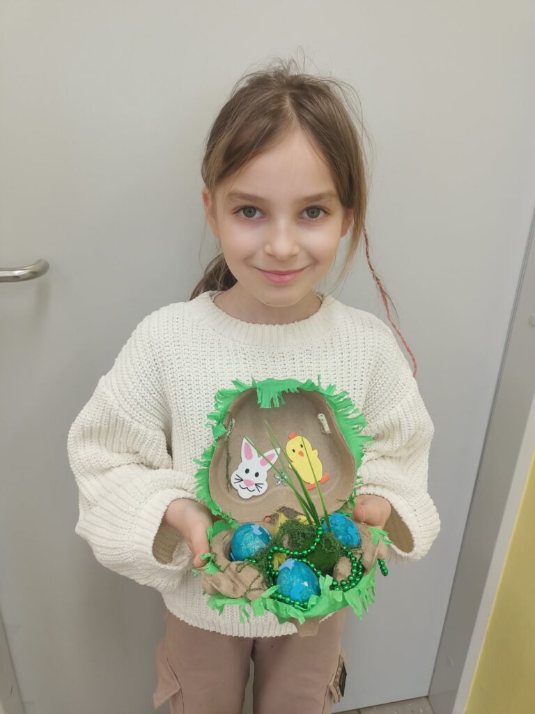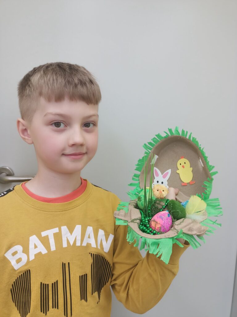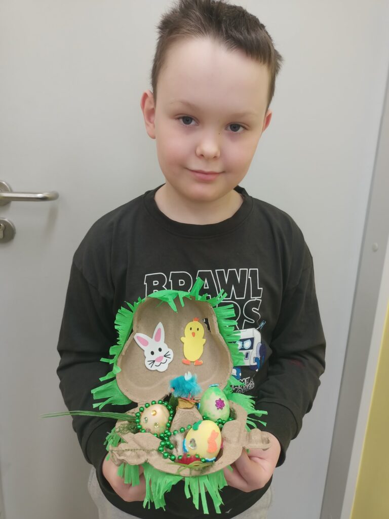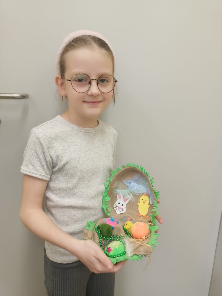 Uczniowie wykazali się ogromną kreatywnością i zaangażowaniem – wśród prac znalazły się m.in. kolorowe pisanki, wielkanocne zajączki, kurczaczki oraz wiosenne dekoracje. Każda praca jest niepowtarzalna i odzwierciedla indywidualne pomysły oraz zdolności artystyczne młodych twórców.