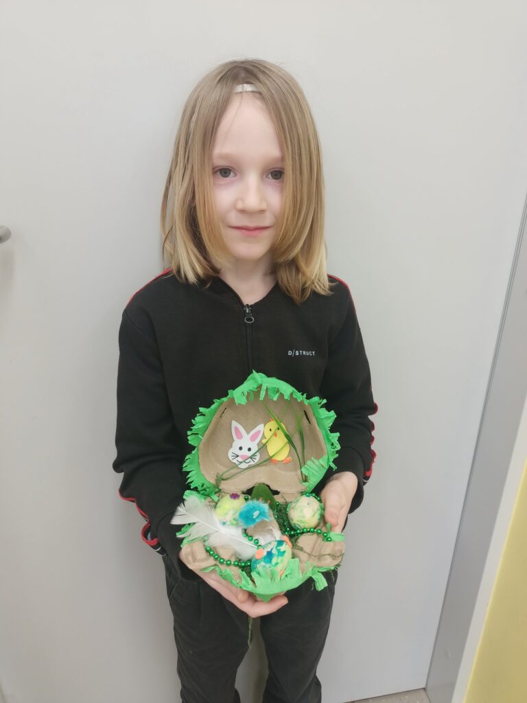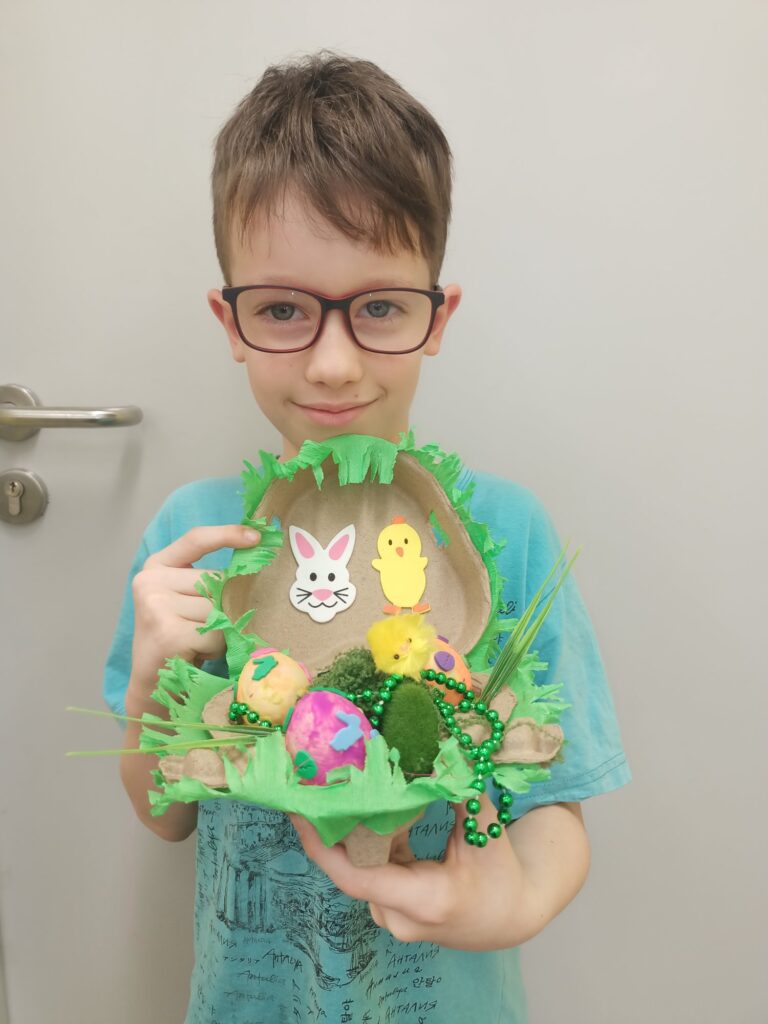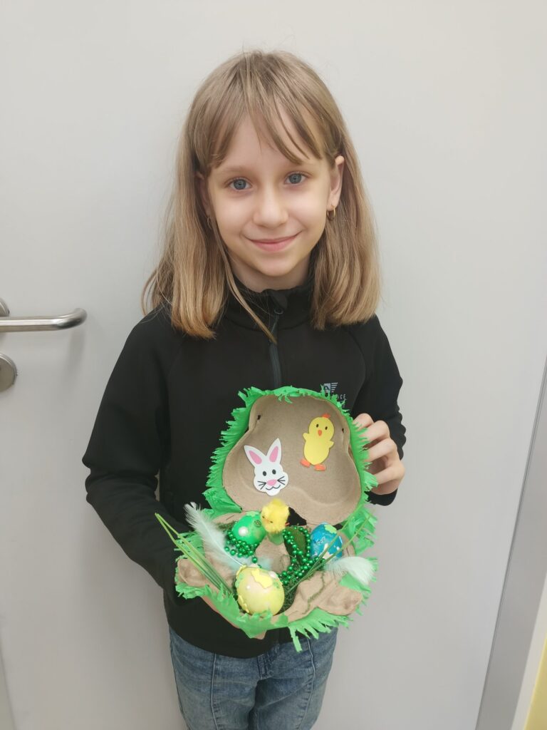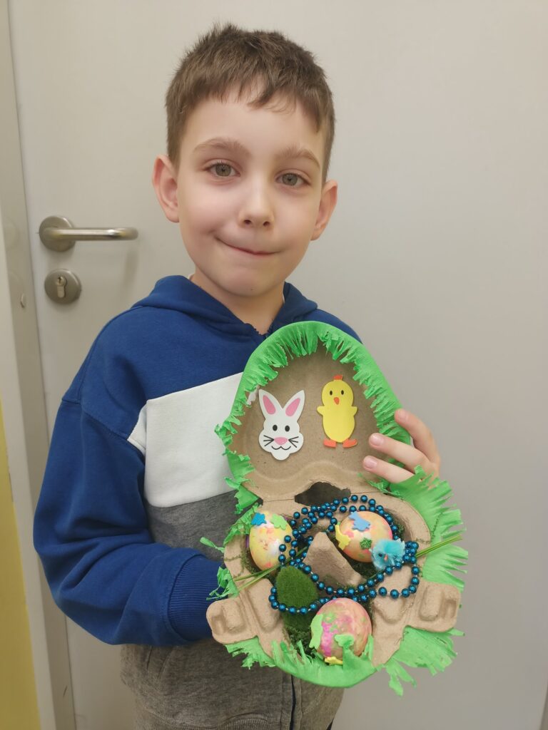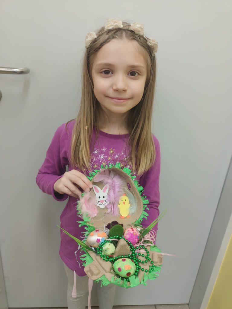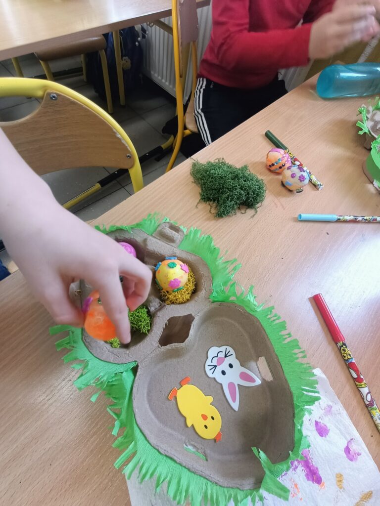 Uczniowie wykazali się ogromną kreatywnością i zaangażowaniem – wśród prac znalazły się m.in. kolorowe pisanki, wielkanocne zajączki, kurczaczki oraz wiosenne dekoracje. Każda praca jest niepowtarzalna i odzwierciedla indywidualne pomysły oraz zdolności artystyczne młodych twórców.