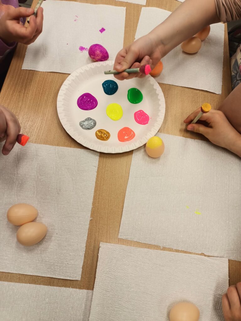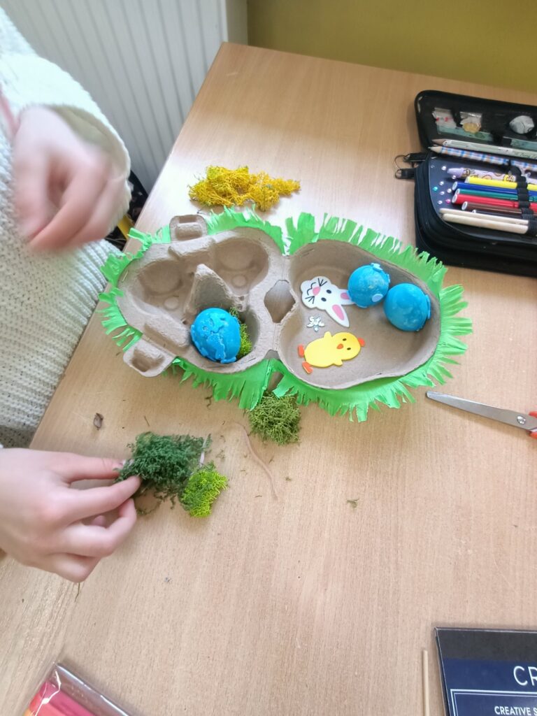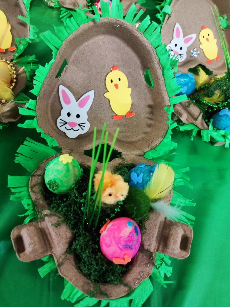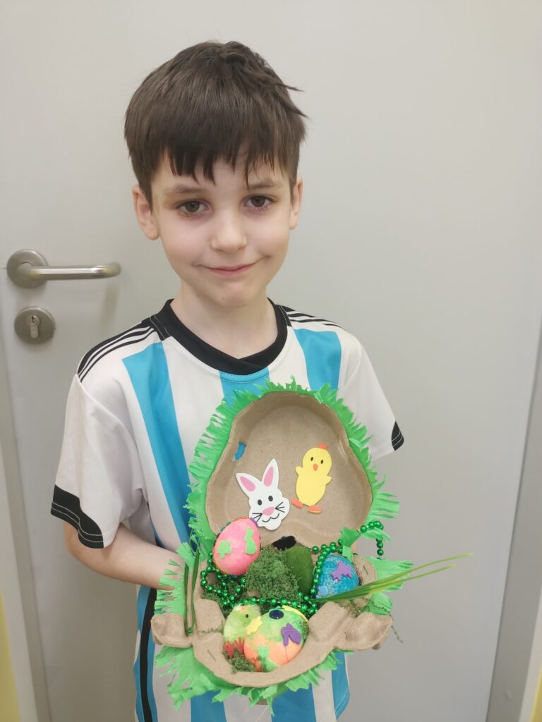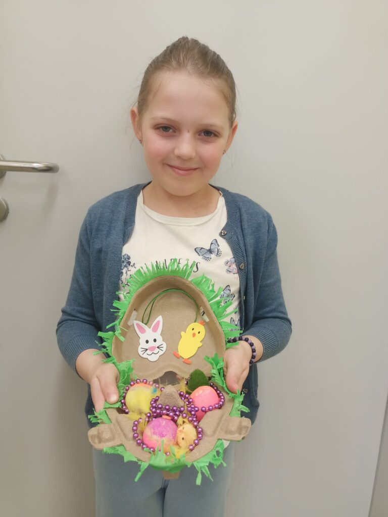 Uczniowie wykazali się ogromną kreatywnością i zaangażowaniem – wśród prac znalazły się m.in. kolorowe pisanki, wielkanocne zajączki, kurczaczki oraz wiosenne dekoracje. Każda praca jest niepowtarzalna i odzwierciedla indywidualne pomysły oraz zdolności artystyczne młodych twórców.