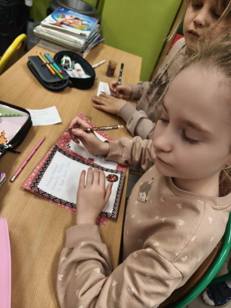 W ostatnich dniach nasi uczniowie z wielkim zaangażowaniem przygotowywali swoje listy do Świętego Mikołaja, tworząc je w wyjątkowej formie – pocztówek. Każda z nich jest niepowtarzalna, pełna kreatywności, świątecznej magii i dziecięcych marzeń.