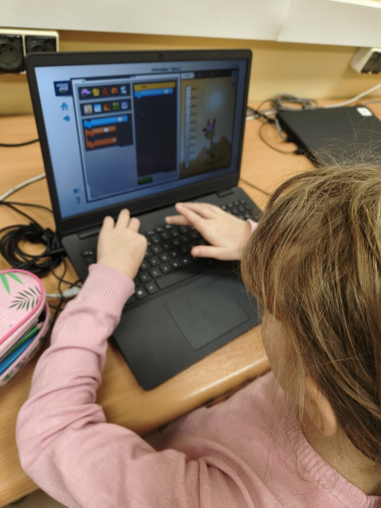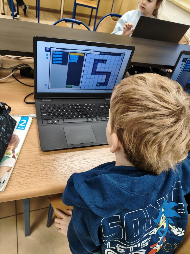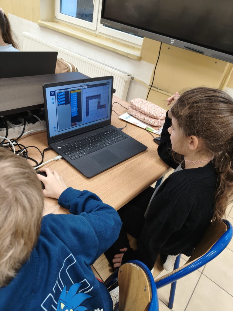 Dzieci z wielkim zaangażowaniem wykonują zadania, tworzą własne projekty i z radością poznają kolejne elementy programowania. Z niecierpliwością czekam na ich następne pomysły! 🚀💡