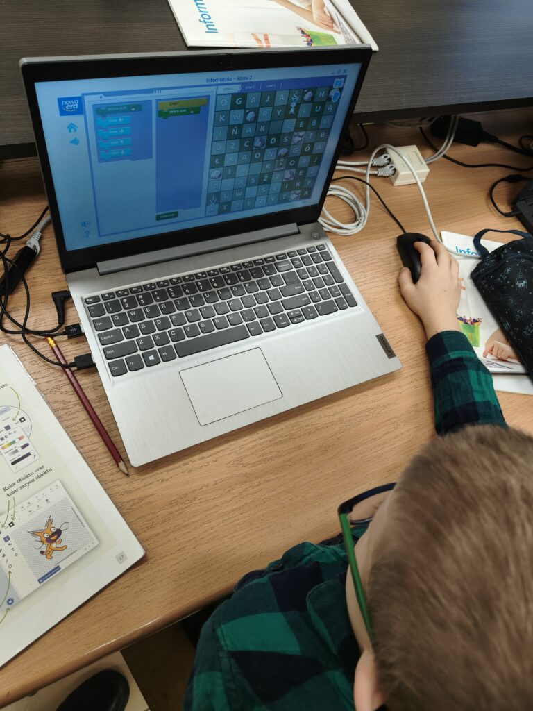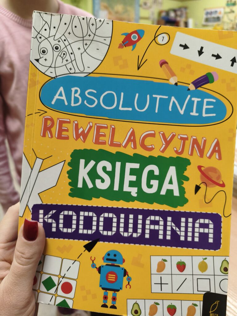 Na naszych zajęciach informatycznych uczniowie rozwijają umiejętności programowania, korzystając z „Absolutnie rewelacyjnej księgi kodowania”. To wyjątkowa książka, która wprowadza dzieci w świat kodu w sposób ciekawy, przystępny i pełen inspirujących zadań. Dzięki niej uczniowie uczą się logicznego myślenia, planowania działań i tworzenia algorytmów.