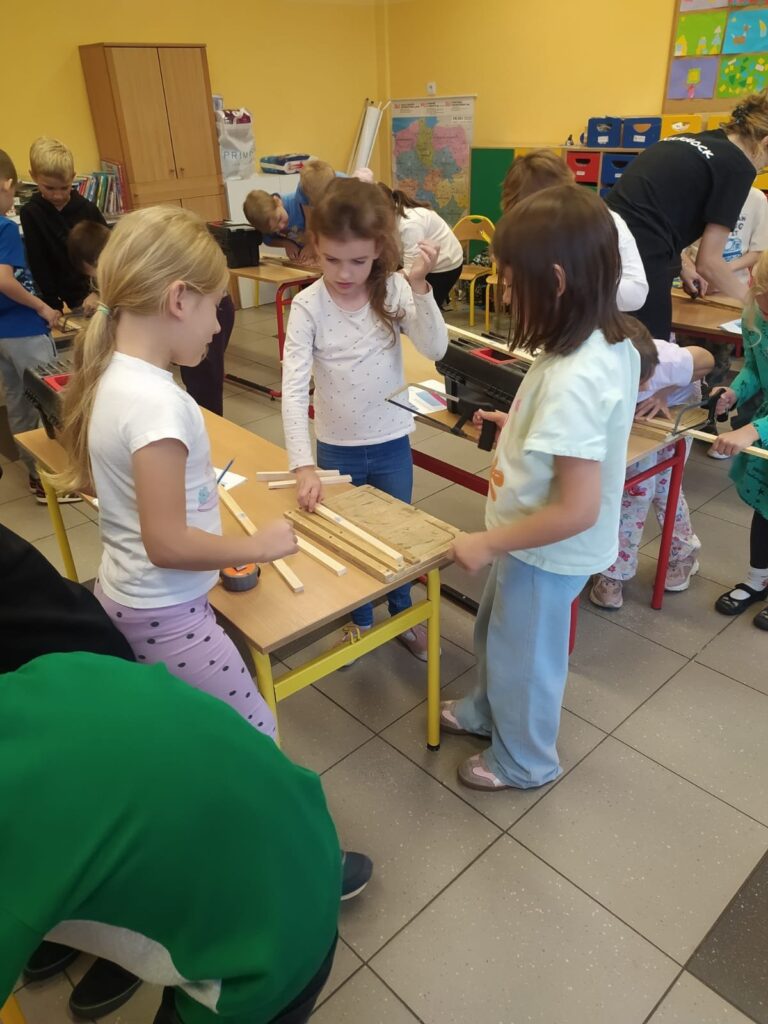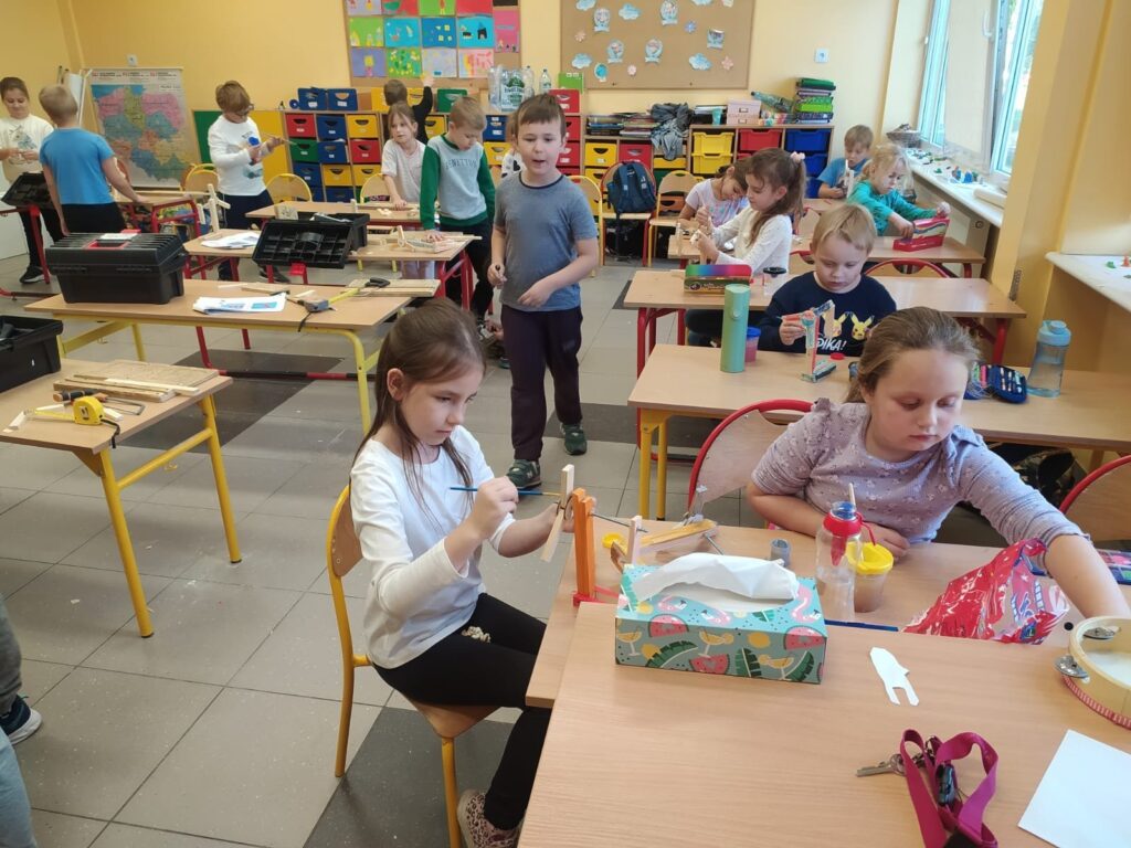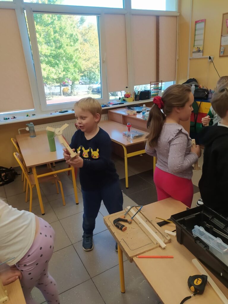 We wrześniu, w ramach, Dnia Chłopca uczniowie klasy 1c majsterkowali.  Wykonali wiatraczki z drewna- z użyciem młotków, piłek, śrubek. Zarówno chłopcy jak i dziewczynki świetnie sobie poradzili i dobrze się bawili.