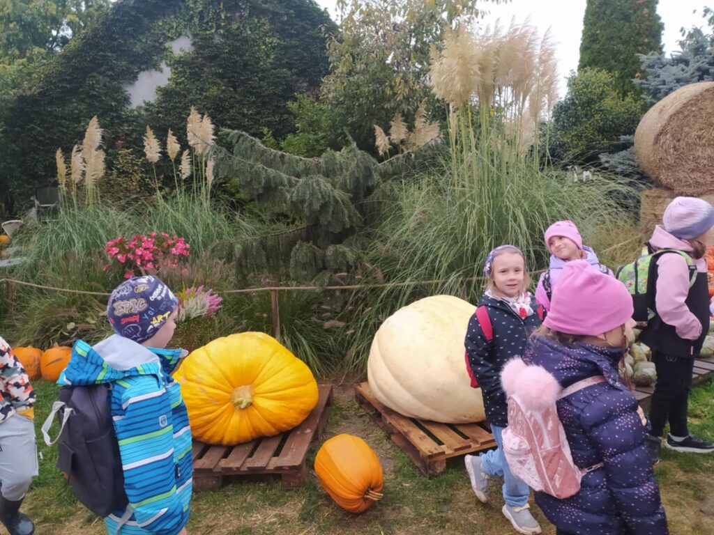 W listopadzie dzieci odwiedziły Dyniową Zagrodę w Plewiskach. Ogromne ilości wspaniałych, rozmaitych dyń, ułożonych w piękne kompozycje, były estetycznym przeżyciem. Dzieci nie mogły nacieszyć się jesiennymi kolorami. Dowiedziały się również ciekawych informacji ogrodniczych.