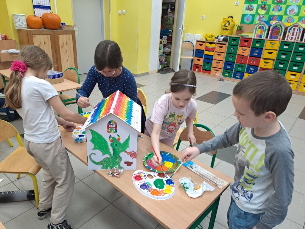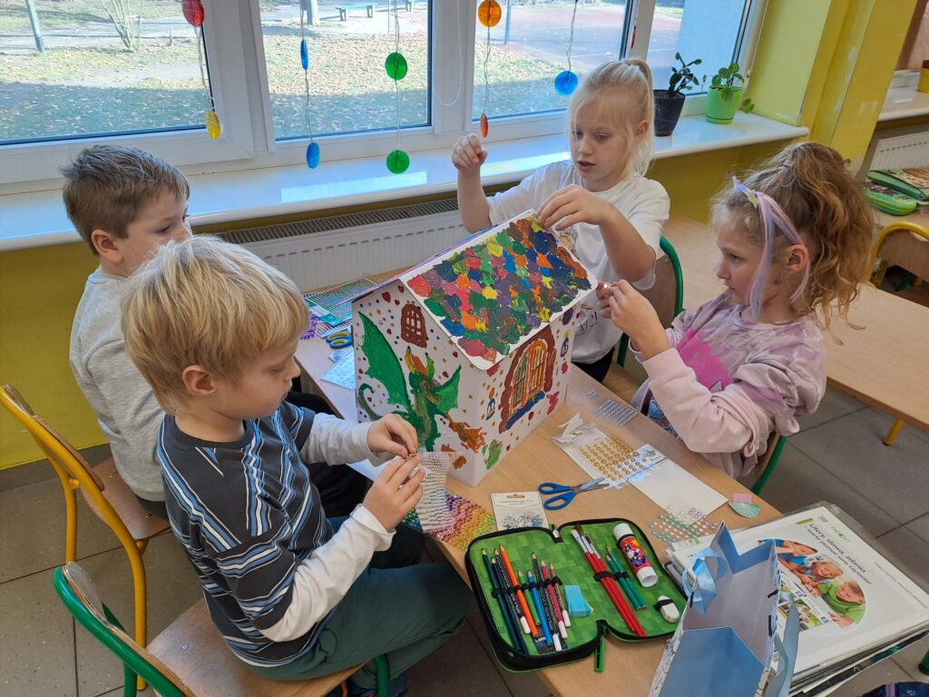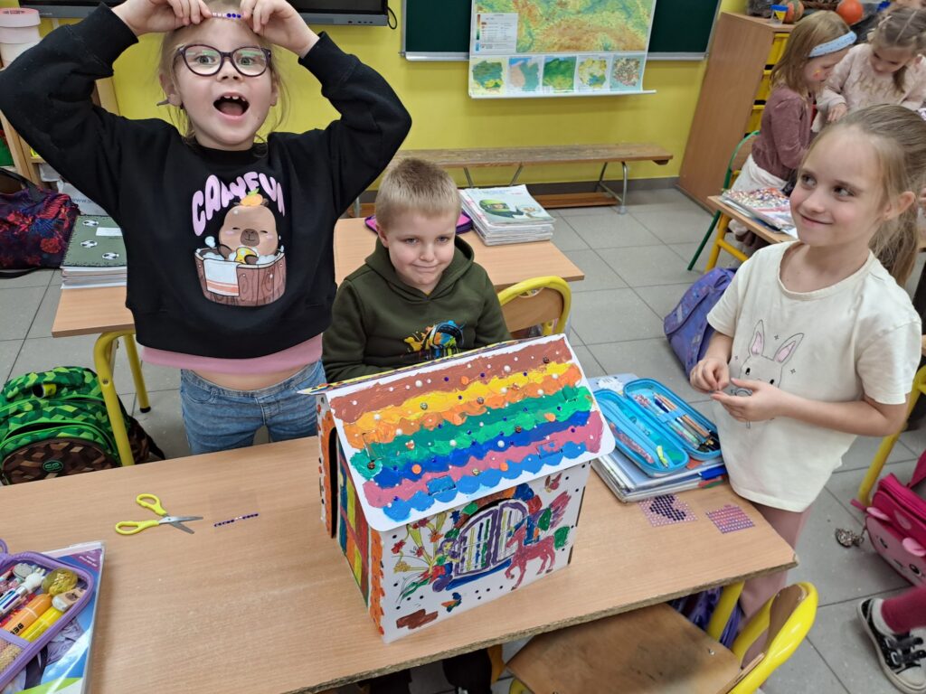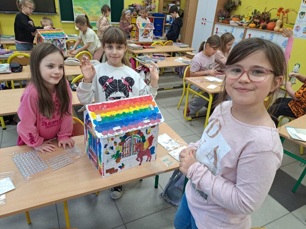 Dnia 5 listopada w naszej klasie obchodziliśmy Międzynarodowy Dzień Postaci z Bajek. To dzień urodzin Walta Disney’a. Święto niesie za sobą nie tylko chęć docenienia bajek i ich twórców, ale i wartości edukacyjne. W tym dniu zainteresowani uczniowie przebrali się za dowolną postać z wybranej przez siebie bajki. Była to również dobra okazja, by zachęcić wszystkich do czytania bajek, a co za tym idzie rozwijania wyobraźni, pamięci, zdobywania wiedzy na różne tematy. Dzieci kochają bajki (i baśnie), dlatego wykorzystując ten temat można trafić w ich gusta i wspólnie wykonać coś twórczego i kreatywnego. Dziś omówiliśmy nasze ulubione bajki i ich bohaterów. Okazało się, że każdy z nas lubi coś innego! Rozpoznawaliśmy też postacie i bajki na podstawie ilustracji. To był dobry moment, aby przypomnieć sobie część z nich, a także morały, które z nich wypływają. Przygotowaliśmy również piękną wystawę w holu szkoły. Bajeczne domki wprowadziły nas w magiczny klimat. Bajki towarzyszą nam od najmłodszych lat, rozweselają i bawią, ale też przekazują ważne prawdy życiowe. Dzień ten przypomniał nam wszystkim, jak ważne są bajki w życiu każdego dziecka. Był on także okazją do świetnej zabawy, kreatywnych działań i rozwijania zainteresowań czytelniczych. Sprawił nam wiele radości!:)