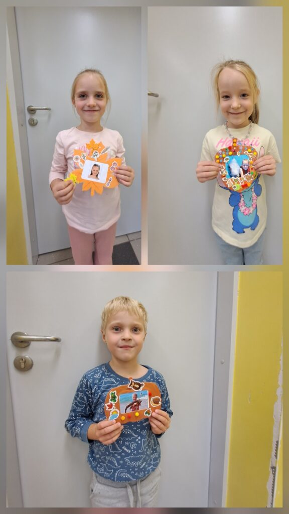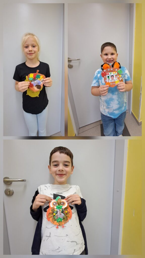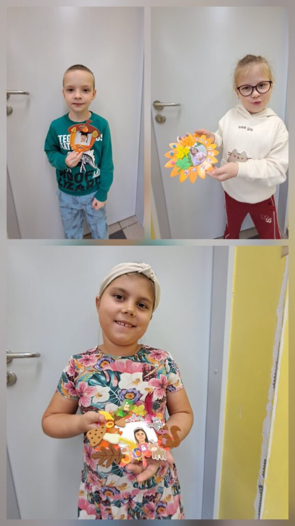 Jesień to piękny czas! Przenosi nas w świat niezwykłych barw. Zainspirowani tą porą roku postanowiliśmy wykonać nasze jesienne portrety. Brązowe żołędzie, różnobarwne liście, żółte słoneczniki oraz pomarańczowe dynie stały się ozdobną ramką naszych prac. Wystarczyło dodać zdjęcie, ozdobić jesiennymi dekoracjami i…gotowe!