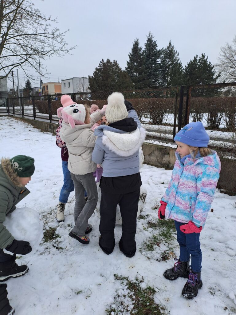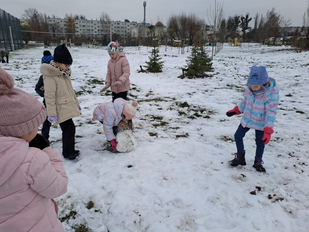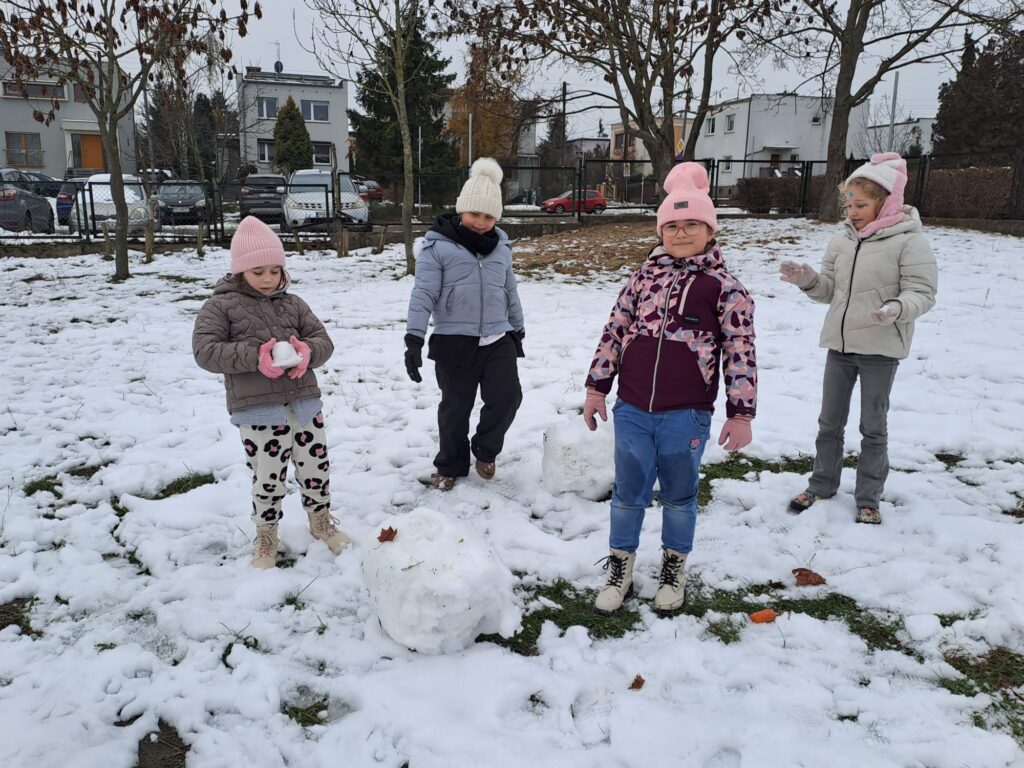 Zima, zima, zima, pada, pada śnieg… Na taką pogodę dzieci czekały bardzo długo! W końcu mogliśmy się oddać zimowemu szaleństwu. Było wspaniale! Dzieci rzucały śnieżkami do celu, ale przede wszystkim lepiły bałwana. Sprawa nie była łatwa, kule były ciężkie, ale daliśmy radę😊 Śnieg niestety tak szybko jak się pojawił, tak szybko zaczął znikać, ale mamy nadzieję, że niebawem znów go doświadczymy i będziemy mogli ponownie oddać się wspaniałym zabawom😊