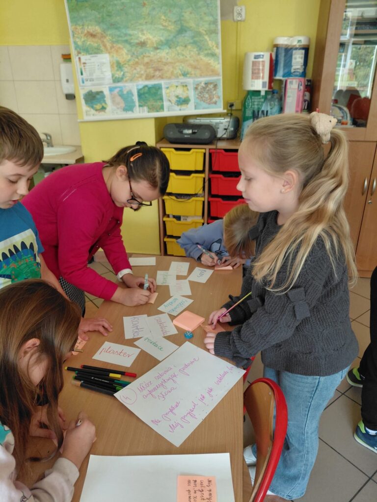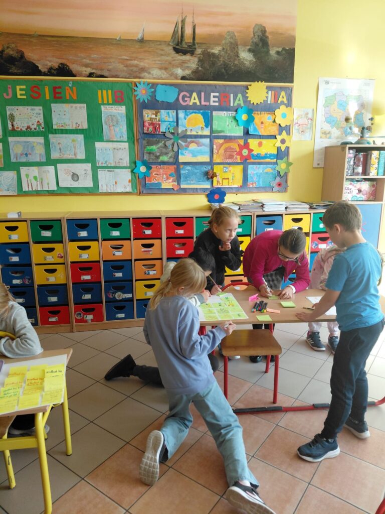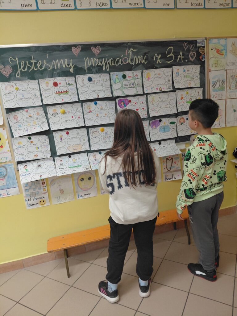 W ramach Tygodnia Przeciwdziałania Przemocy Rówieśniczej Dzieci z klasy 3 A poszukiwały kluczy do przyjaźni w różnorodnych aktywnościach. Pracowały w grupach, szukając odpowiedzi na pytania: Jak znaleźć przyjaciela?