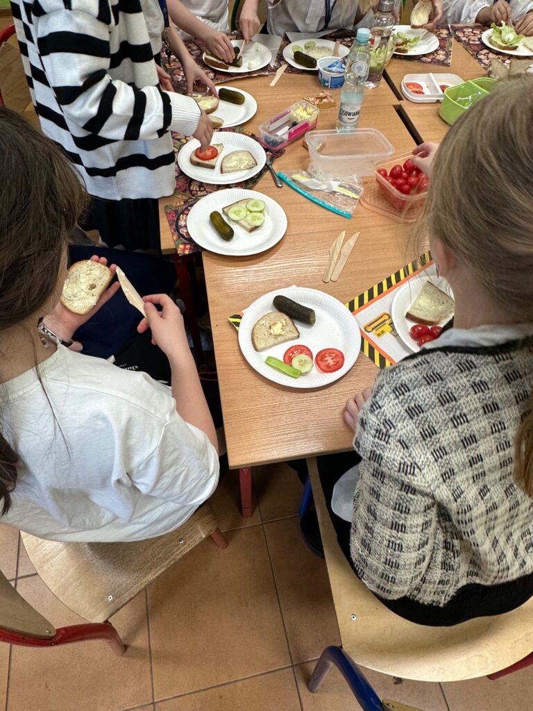 Wspólne przygotowywanie posiłków było świetną okazją do rozmowy o zdrowym odżywianiu oraz dbaniu o siebie na co dzień. To również doskonały moment na integrację – uczniowie współpracowali, dzielili się pomysłami i spędzali czas w radosnej, przyjaznej atmosferze.