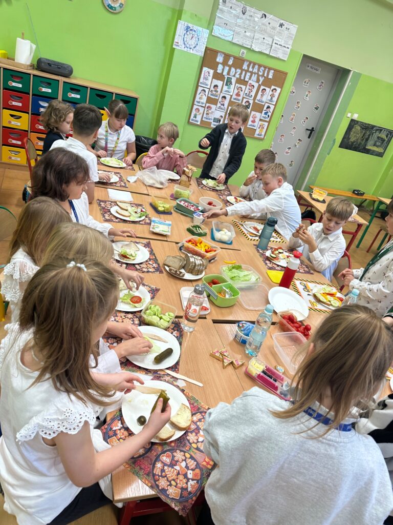 Było zdrowo, smacznie i naprawdę wesoło! Klasa 3d udowodniła, że zdrowe jedzenie może być nie tylko wartościowe, ale też pełne zabawy i kolorów. 🍎🥒🥪