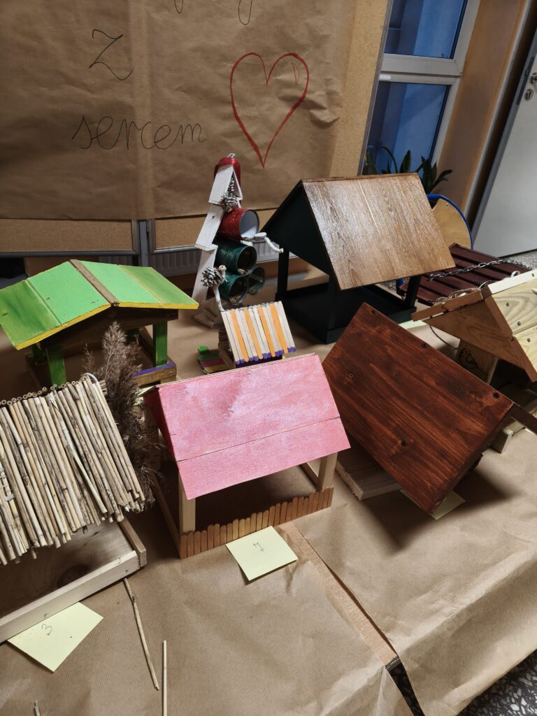W ramach konkursu „Budujemy z sercem” uczniowie naszej szkoły z ogromnym zaangażowaniem i kreatywnością wykonali budki lęgowe z materiałów ekologicznych. Każda z prac była wyjątkowa – dzieci zadbały zarówno o estetykę, jak i o funkcjonalność budek, tak aby stały się bezpiecznym schronieniem dla ptaków w trudnym, zimowym okresie. 3 budki które zostały wybrane przez nauczycieli naszej szkoły zostaną rozmieszczone na terenie szkoły, gdzie posłużą lokalnym ptakom jako miejsce do odpoczynku, schronienia i przetrwania chłodniejszych miesięcy. Dzięki Waszej pracy i sercu okazanym przyrodzie, nasza szkolna przestrzeń stanie się jeszcze bardziej przyjazna dla środowiska. Serdecznie dziękujemy wszystkim uczestnikom konkursu – za kreatywność, zaangażowanie i piękny przykład troski o naturę. Jesteśmy dumni z Waszych pomysłów i ekologicznej postawy!