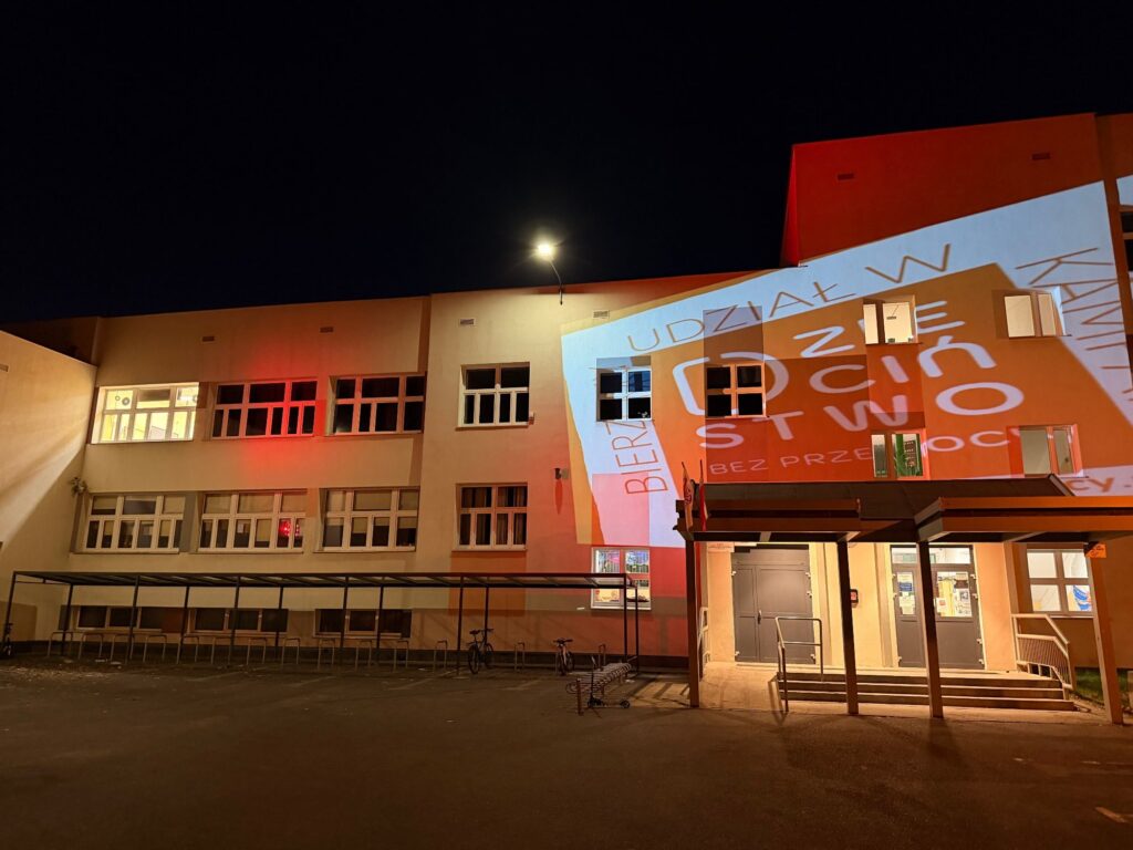 w życiu dorosłym. Tego dnia nasza szkoła rozświetliła się w kolorze czerwonym. Rozświetlenie budynku na czerwono 19 listopada to symboliczny gest łączności w ramach Międzynarodowego Dnia Przeciwdziałania Przemocy wobec Dzieci.