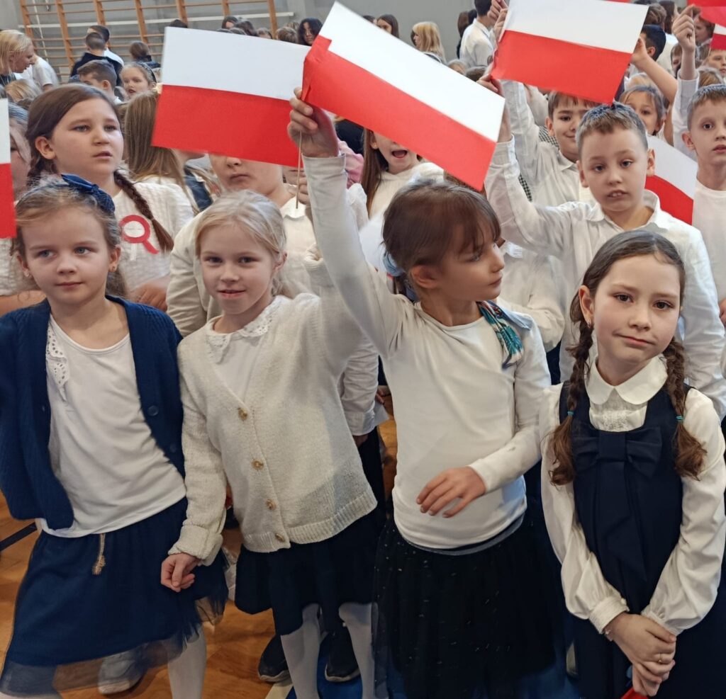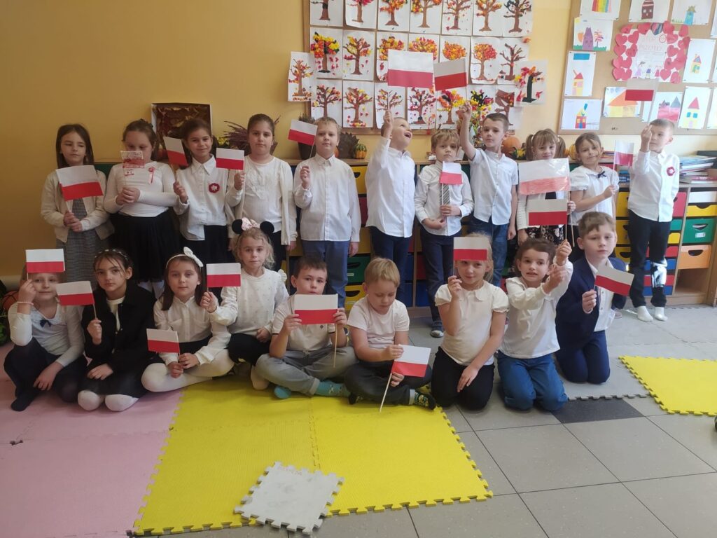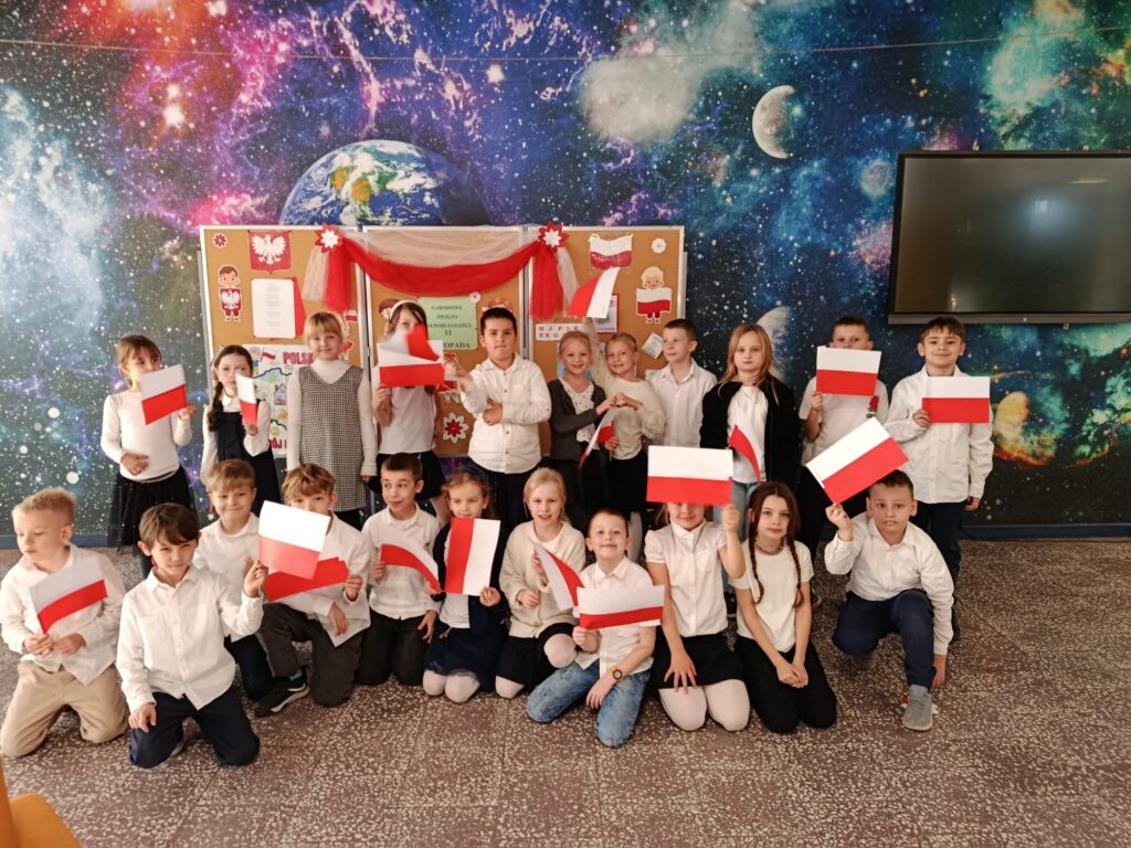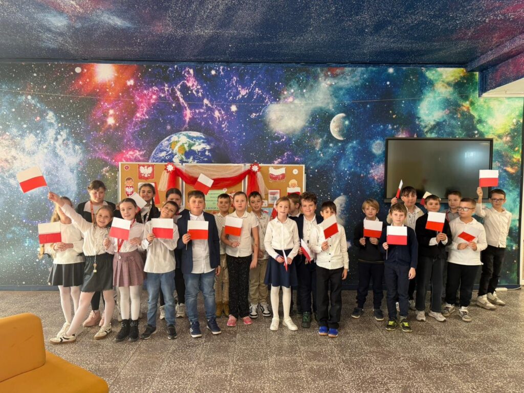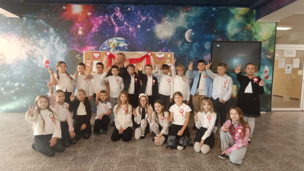 Dnia 7 listopada 2025 roku dzieci z edukacji wczesnoszkolnej uczciły obchody kolejnej rocznicy odzyskania niepodległości przez naszą Ojczyznę. Był to dzień pełen radości, dumy, ale także i wzruszeń. Obchody Święta Niepodległości rozpoczęły się od dołączenia do akcji #SzkoładoHymnu. O godzinie 11.11. zebrani uczniowie z całej szkoły wraz z Dyrekcją i nauczycielami, odśpiewali wspólnie nasz hymn „Mazurka Dąbrowskiego”, a śpiew rozniósł się po całej szkole. Uczniowie z klas 1-3 przygotowali również piękną wystawę, która zdobiła hol główny naszej szkoły, z wielkim zaangażowaniem malowali plakaty i omawiali tematykę o patriotyzmie w swoich klasach wspólnie z wychowawcami. W ten sposób wszyscy starali się przekazać swoją wdzięczność za to, że żyjemy i mieszkamy w wolnym kraju oraz zapewnić o naszej pamięci o tych, którzy o tą wolność walczyli.
