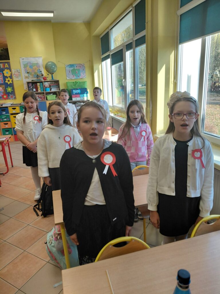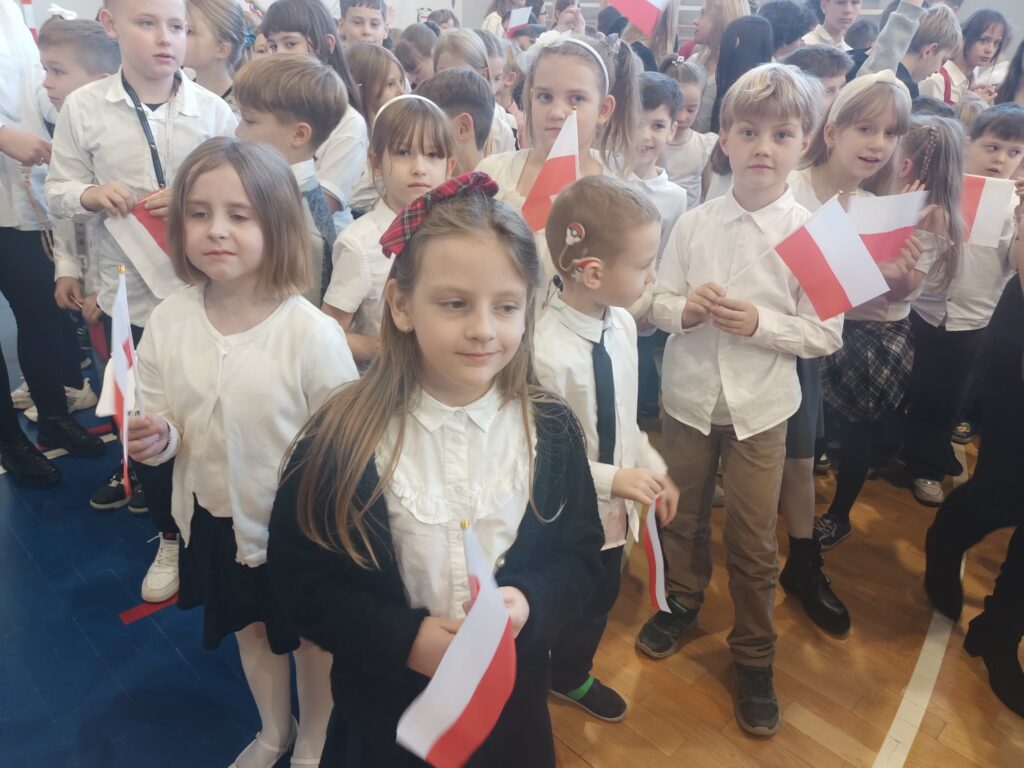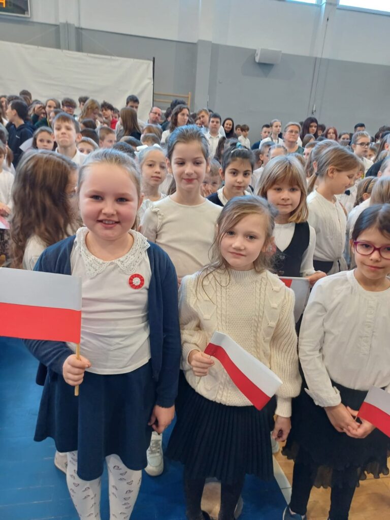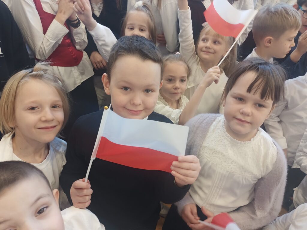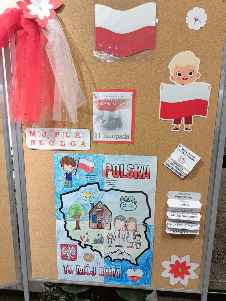 Dnia 7 listopada 2025 roku dzieci z edukacji wczesnoszkolnej uczciły obchody kolejnej rocznicy odzyskania niepodległości przez naszą Ojczyznę. Był to dzień pełen radości, dumy, ale także i wzruszeń. Obchody Święta Niepodległości rozpoczęły się od dołączenia do akcji #SzkoładoHymnu. O godzinie 11.11. zebrani uczniowie z całej szkoły wraz z Dyrekcją i nauczycielami, odśpiewali wspólnie nasz hymn „Mazurka Dąbrowskiego”, a śpiew rozniósł się po całej szkole. Uczniowie z klas 1-3 przygotowali również piękną wystawę, która zdobiła hol główny naszej szkoły, z wielkim zaangażowaniem malowali plakaty i omawiali tematykę o patriotyzmie w swoich klasach wspólnie z wychowawcami. W ten sposób wszyscy starali się przekazać swoją wdzięczność za to, że żyjemy i mieszkamy w wolnym kraju oraz zapewnić o naszej pamięci o tych, którzy o tą wolność walczyli.