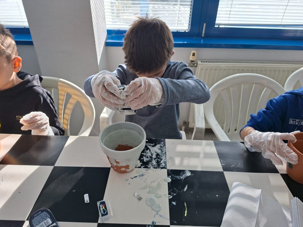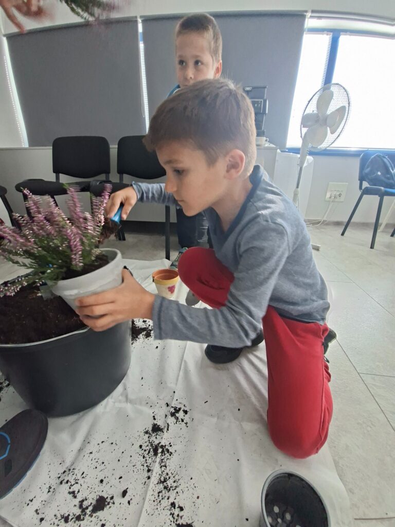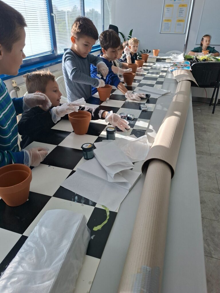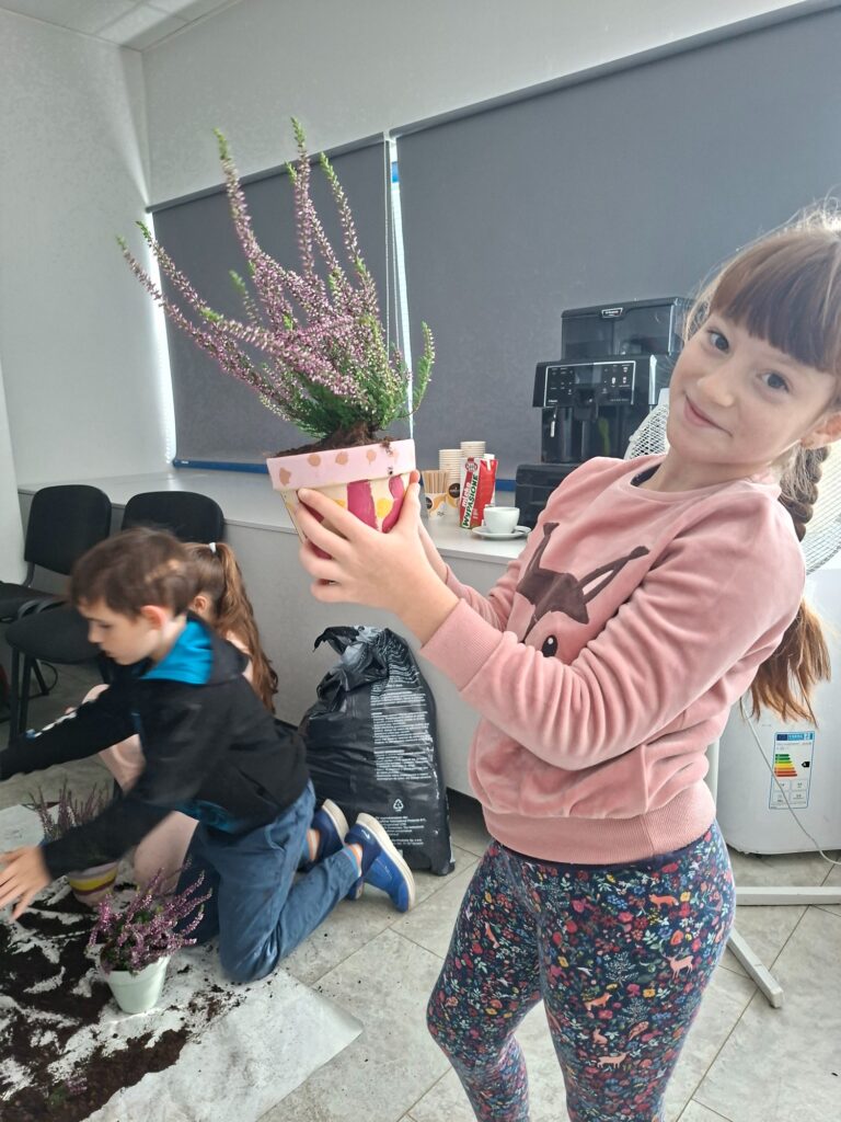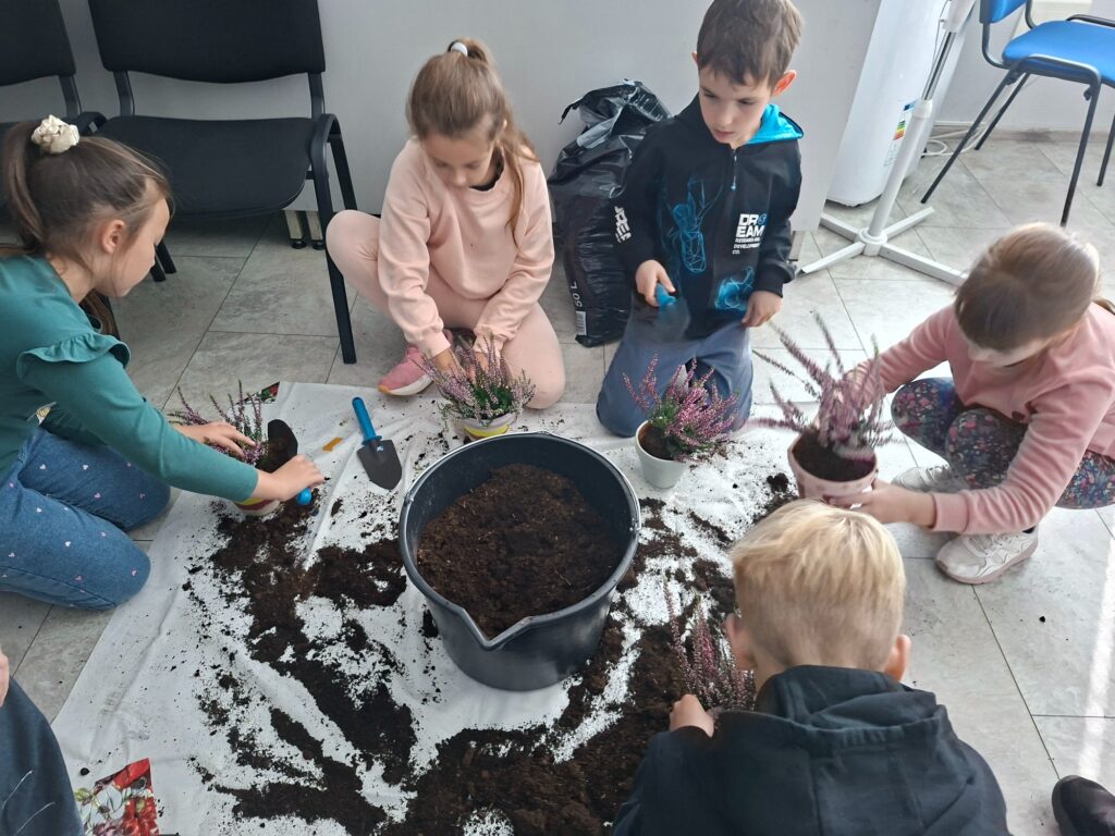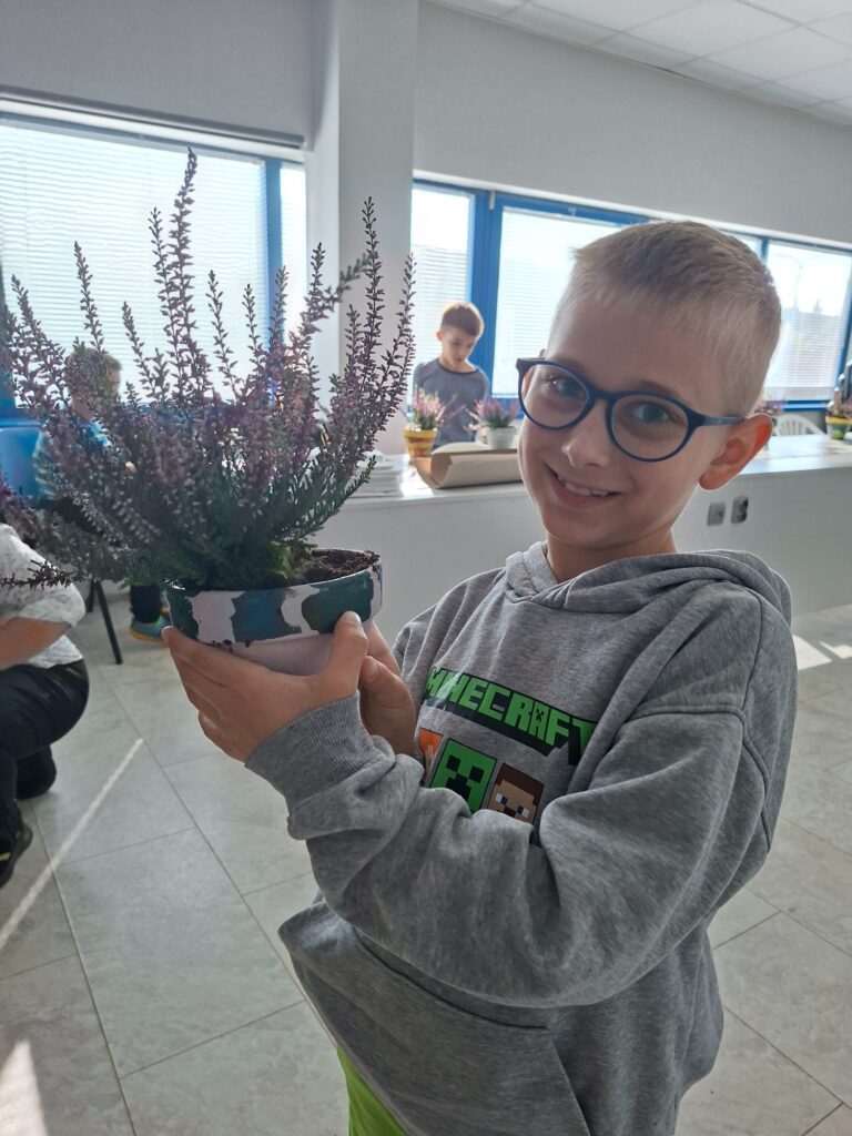 25 września uczniowie klasy IId wzięli udział w warsztatach ogrodniczych przygotowanych przez pracowników sieci sklepów Castorama. Warsztaty powstały w ramach prowadzonego przez market projektu MAJSTERKOWO mającego na celu uczenie podstaw ogrodnictwa, ochrony przyrody oraz rozwijanie zdolności manualnych. Pracownicy Castoramy przygotowali dla nas krótką pogadankę, podstawowy sprzęt ogrodniczy, ziemię, doniczki, farby oraz fioletowe i różowe wrzosy, które  zwiastują nadchodzącą jesień. Uczniowie z  wielkim zapałem zabrali się do pracy. Zgodnie i twórczo współpracowali, malowali doniczki, a następnie sadzili w nich wrzosy. Każdy mógł zabrać do domu własnoręcznie posadzoną roślinkę 🙂