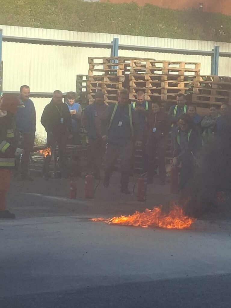 Na koniec uczniowie zwiedzili sklep, zapoznali się z pracą pracowników Castoramy oraz zobaczyli  prowadzone przez strażaków szkolenie (dla pracowników sklepu) z stymulatorem pożaru i użyciem gaśnic proszkowych.