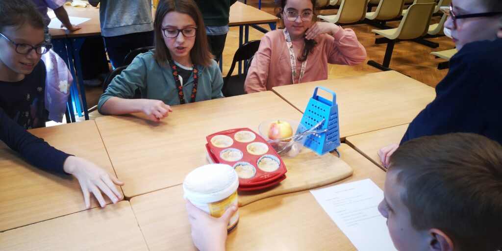 W kwietniu uczniowie klas 4 i 5 uczestniczyli w naszej szkole w warsztatach z dietetykiem, który odsłaniał przed nimi tajniki zdrowego stylu życia. Uczniowie poznali rolę cukru w organizmie i konsekwencje jego nadmiernego spożycia. Wspólnie poszukiwali bardziej i mniej oczywistych źródeł cukru w diecie oraz sposobów na jego ograniczenie. Przedstawione zostały informacje dotyczące zamienników cukru i sposobów na ich wykorzystanie. Była też możliwość spróbowania niektórych substancji słodzących oraz przygotowanie i degustacja potraw z ich użyciem. Podczas zajęć połączono część edukacyjną i kulinarną, które cieszyły się dużym zaangażowaniem uczestników, co możemy zaobserwować na zdjęciach.