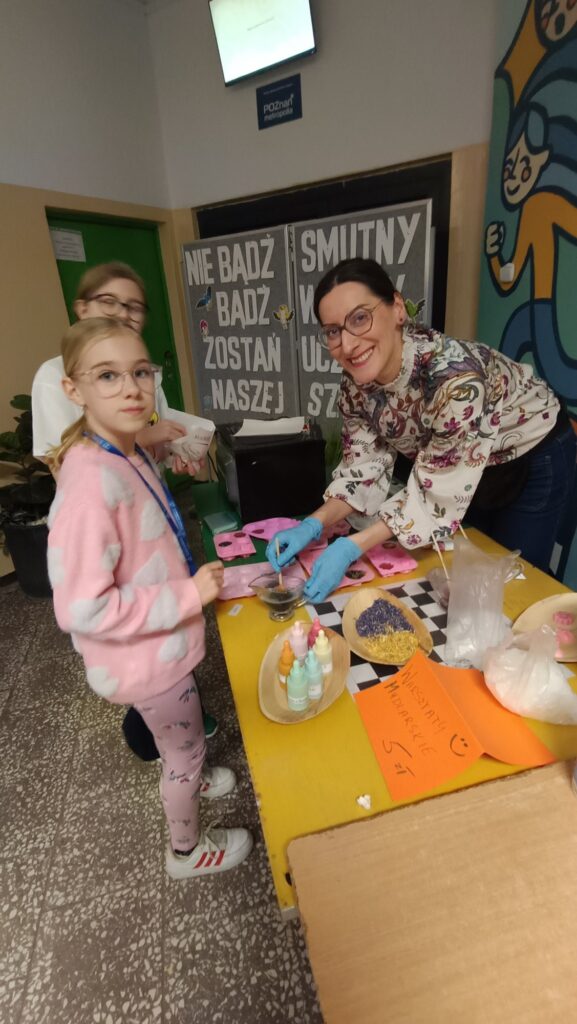 Przez cały czas trwania wieczoru dorośli jak i dzieci mogli zjeść kawałek pysznego ciasta upieczonego przez rodziców i nauczycieli, skosztować waty cukrowej bądź popcornu lub zakupić pyszny koktajl lub galaretkę przygotowaną przez Kuchnię Cateringową Mealway. Nie zabrakło też warsztatów tworzenia mydełek czy warsztatów zdrowotnych z dietetykiem.