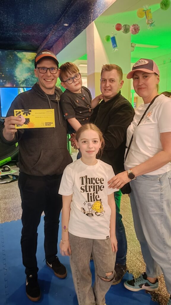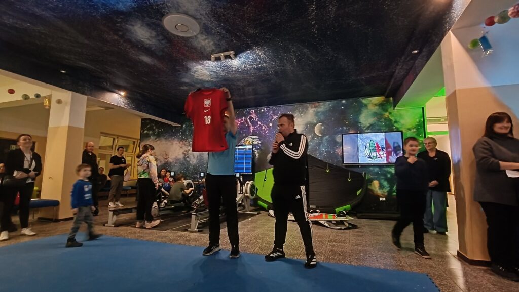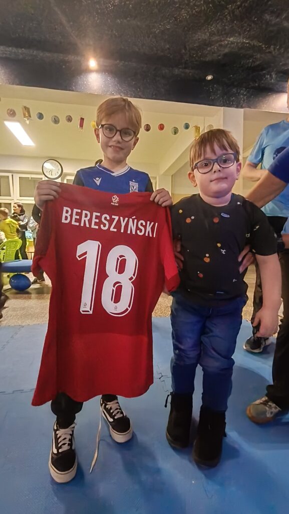 Po wszystkich prezentacjach przyszedł czas na licytację oryginalnej koszulki reprezentanta Polski w piłce nożnej – pana Bartosza Bereszczyńskiego, w której grał w jednym z meczów reprezentacji, piłki nożnej z autografami „Kolejorza” oraz 2 voucherów na trening windsurfingu. Prowadzący licytację prawie dostali zawał, bo rodzice z dziećmi co chwila podwyższali kwotę. Największa „walka” była o koszulkę i piłkę. Bardzo dziękujemy za hojność. Cała kwota została wpłacona na rzecz naszego małego bohatera – Felusia. Dziękujemy bardzo rodzicom, którzy zorganizowali koszulkę i podarowali ją na naszą licytację.
