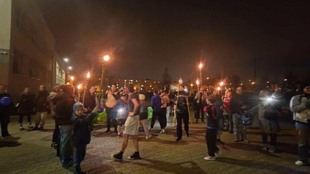 Całą imprezę zakończył symboliczny bieg wokół szkoły. Około godziny 20.00 wszyscy wyszliśmy na plac obok boiska i przy zapalonych pochodniach i latarkach komórek uczniowie z rodzicami pobiegli, by wyrazić swoje wsparcie dla chorego i walczącego Felusia.