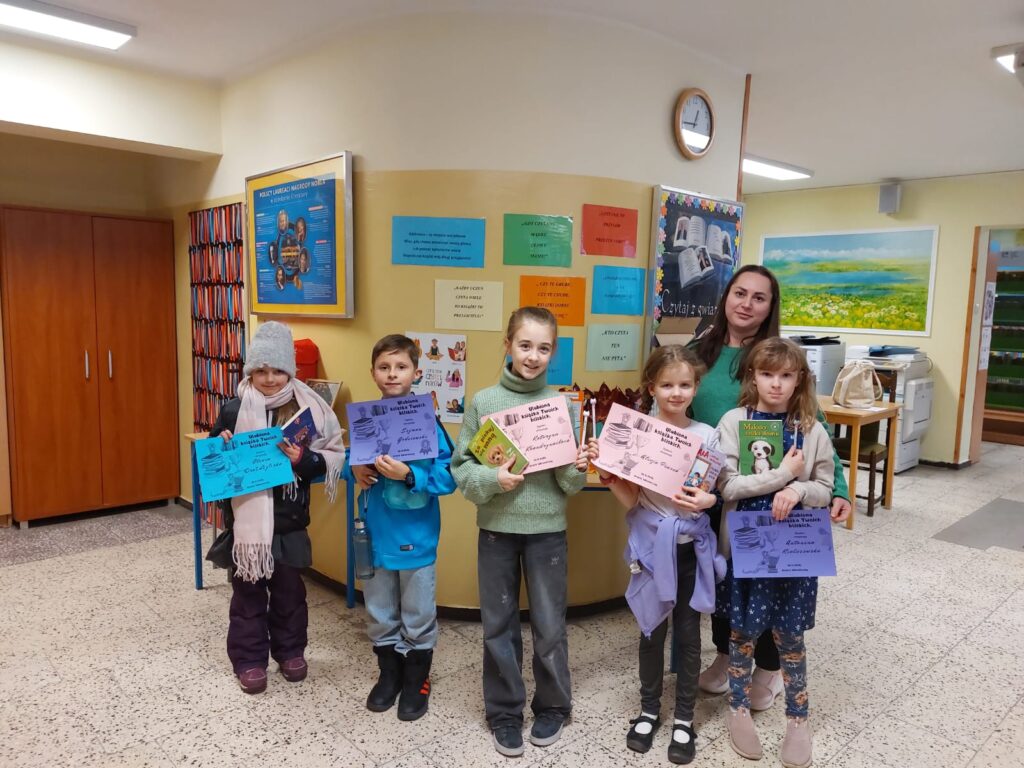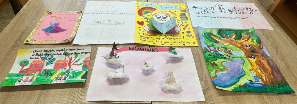 W środę, 26 listopada br. wszystkie osoby, które wzięły udział w konkursie otrzymały pamiątkowe dyplomy, książki i śmieszne długopisy. Przyznano również trzy pierwsze miejsca. Dziękujemy za udział w konkursie, a tym samym za wzbogacenie przestrzeni bibliotecznej pięknymi pracami.