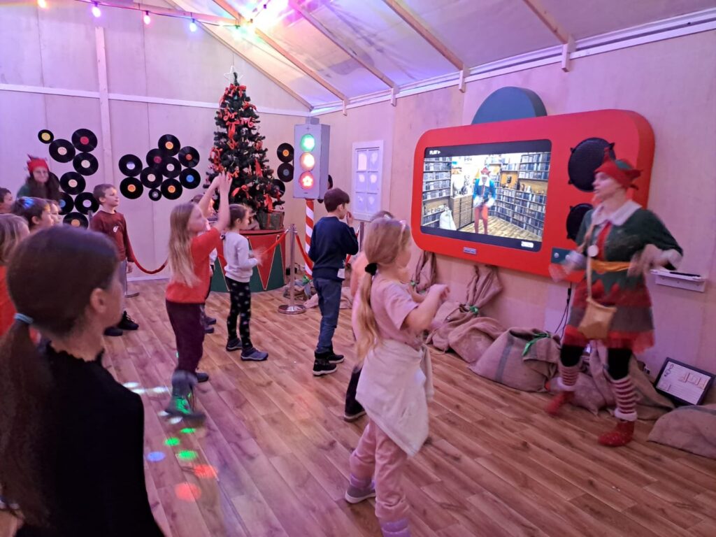 W grudniu klasy 1a, 1b, 2a, 2c, 2d i 3d wybrały się na wycieczkę do Wielkiej Fabryki Elfów. Wrażeń było co niemiara, bo wszyscy przenieśli się do innego świata- świata Wielkiej fabryki Elfów, gdzie magię świąt można odkryć każdym zmysłem !!! Trwały tam intensywne przygotowania do Świąt. Zabawki dla młodszych, zabawki dla starszych – wszystkie Elfy pilnie pracowały, aby zdążyć z produkcją prezentów. Święty Mikołaj też już szykował się do podróży i spędzał ostatnie chwile na odpoczynku, aby nabrać sił do pracy. Elf Kompozytor zaprezentował mu partyturę melodii świąt. Jednak doszło do dramatu– nutki się rozsypały, a Elf nie był w stanie przypomnieć sobie ich kolejności. Czasu było bardzo mało. Całe szczęście Elf nie był sam. Nasi uczniowie wraz z Elfami Przewodnikami ruszyli w poszukiwaniu kolejności nutek w partyturze melodii świąt. Udało się znaleźć wszystkie, dzięki czemu wybrzmiała melodia świąt. To ogromny sukces Elfów, ale także i wszystkich naszych dzieci, ponieważ ocaliliśmy święta, dzięki sile współpracy.