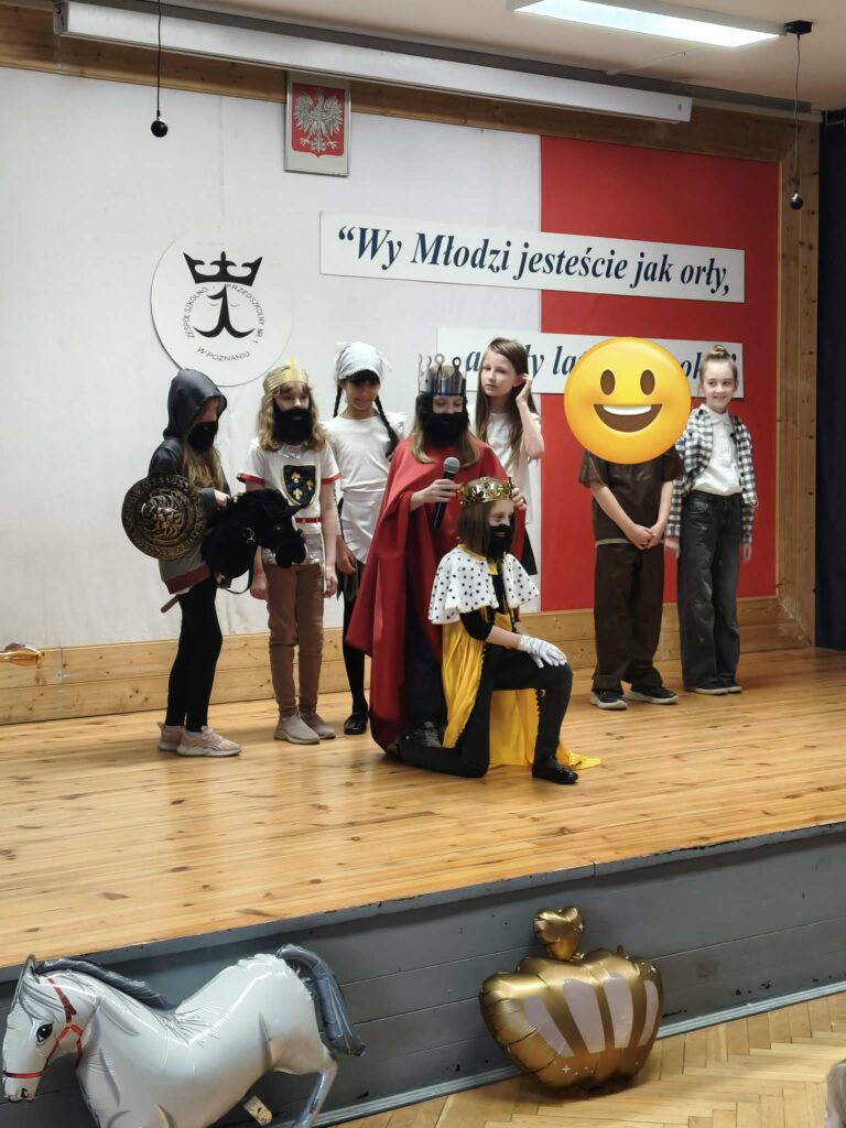 Z okazji Dnia Patrona naszej szkoły dzieci z grupy „Koziołki” przygotowały wyjątkowy występ dla uczniów klas 1–3. Naszym patronem jest Władysław Łokietek, dlatego mali artyści przypomnieli wszystkim, czym jest zjednoczenie oraz jak ważna jest wiara we własną siłę i wspólne działanie.