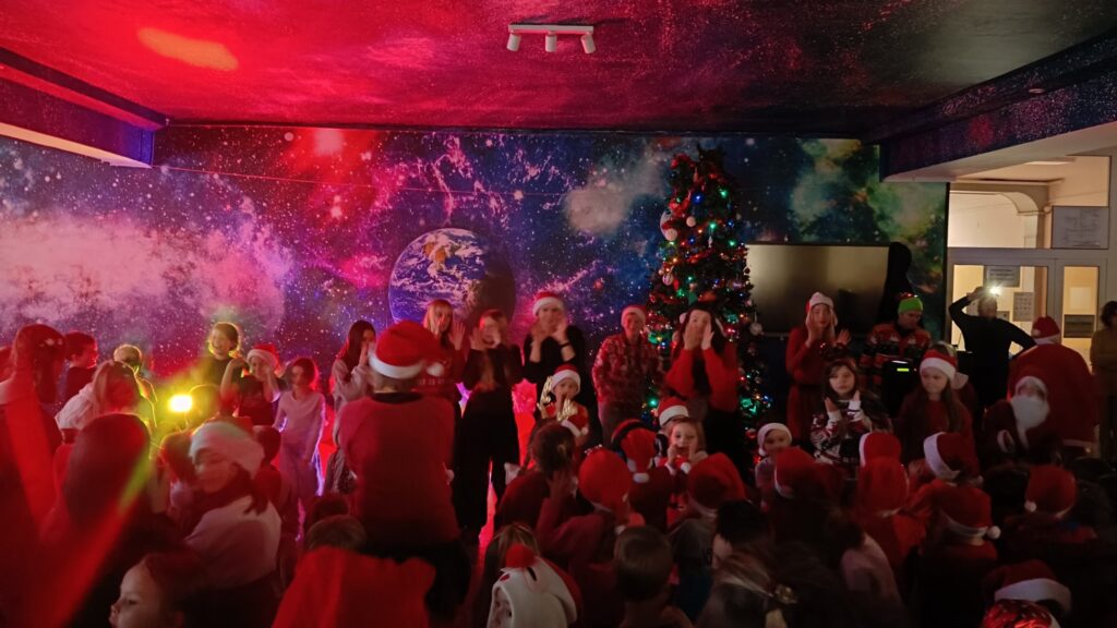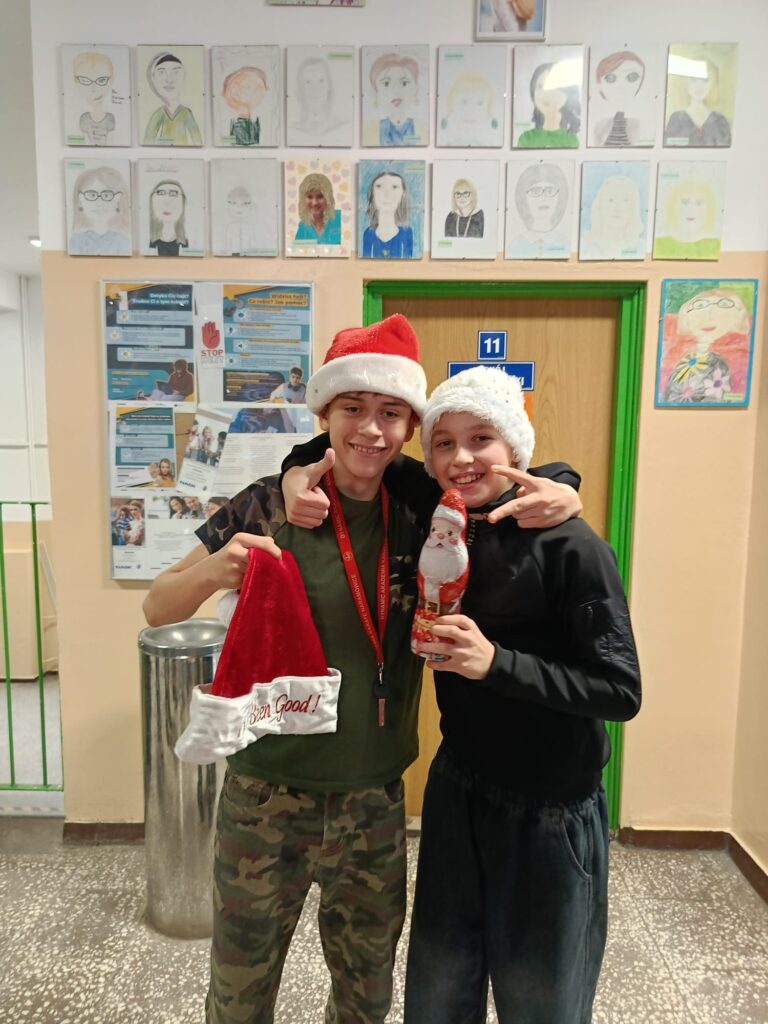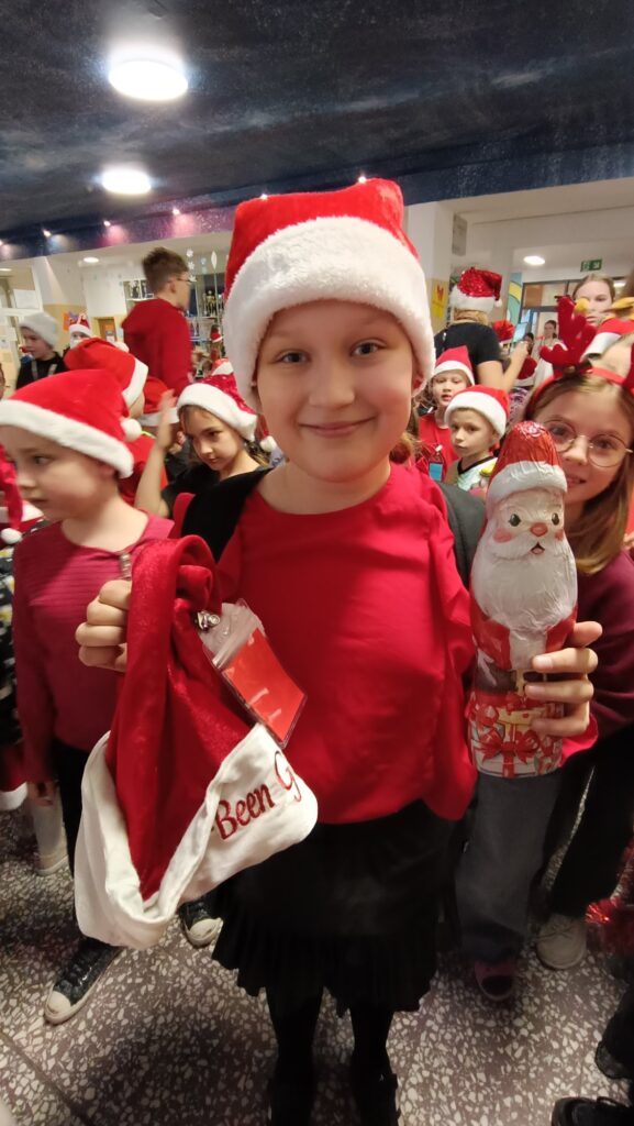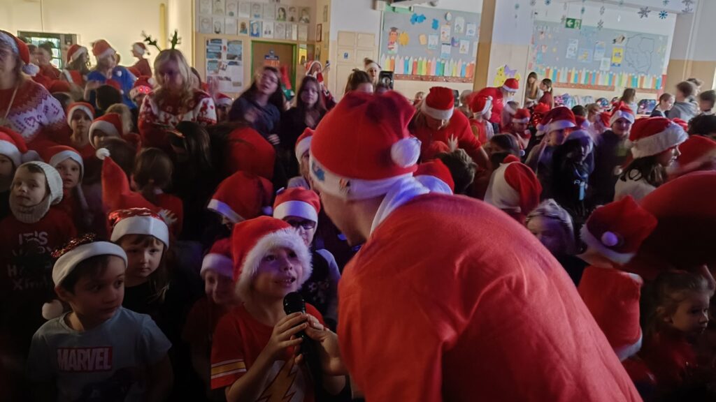 W piątek 6 grudnia Dzieci i Uczniowie z naszego Zespołu Szkolno- Przedszkolnego nr 1 w Poznaniu wzięli udział w kolejnej edycji Charytatywnego Ogólnopolskiego Dnia Piżamy pod hasłem: „I Ty możesz zostać św. Mikołajem”. W tym dniu w naszej szkole zrobiło się naprawdę czerwono. Nasi Wychowankowie razem z Nauczycielami założyli czapki, peleryny, czy inne ubrania w kolorach stroju św. Mikołaja., by w ten sposób wyrazić swoje wsparcie duchowe dla dzieci chorych z oddziałów onkologicznych. Wszystko po to, by chore dzieci wiedziały, że jesteśmy z Nimi w ich walce i cierpieniu, że ich wspieramy i przesyłamy moc uścisków do dalszej walki z chorobą. Sam dzień miał swoją kulminację o godzinie 12.30. Razem – szkoła i przedszkole, mieliśmy się zgromadzić przed budynkiem zespołu, by po raz kolejny pobiec dla chorych Dzieci. Niestety brzydka pogoda w tym dniu sprawiła, że nie wyszliśmy na dwór, by nie narażać nasze Dzieci i zebraliśmy się na naszym kosmicznym holu, by razem zatańczyć i zaśpiewać piosenkę. Wszyscy razem świetnie się bawiliśmy i spędziliśmy czas. Tradycyjnie przez dwa tygodnie odbywała się zbiórka pieniężna na cel Fundacji „Gdy liczy się czas”, która wspiera chore Dzieci z oddziałów onkologicznych. Zebraliśmy w gotówce razem 3000zł.
